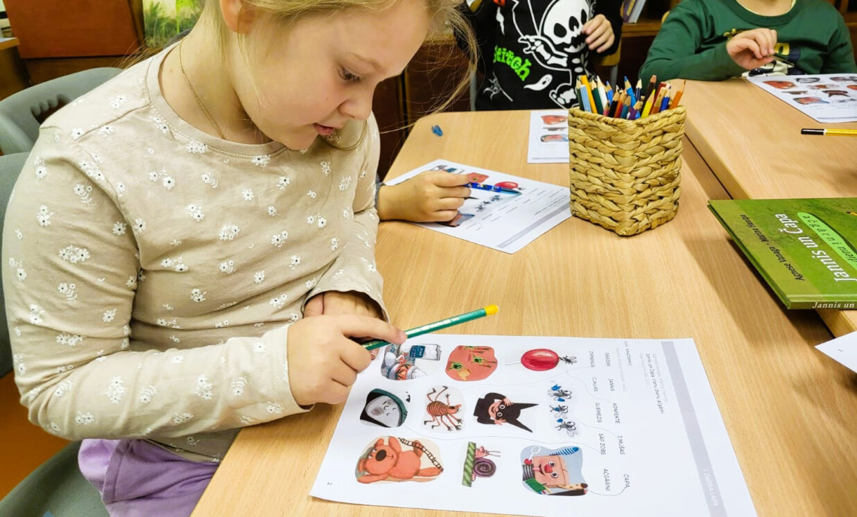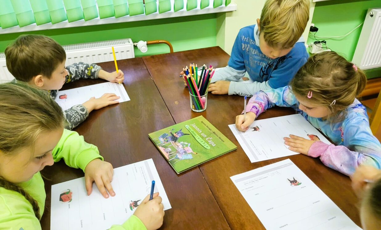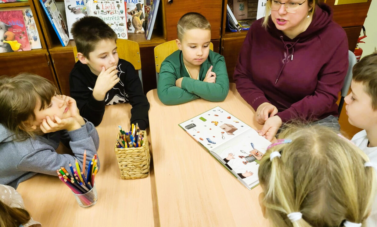 Nodarbības laikā pirmklasnieki iepazinās ar Agneses Vanagas un Marinas Heniņas grāmatu “Jannis un Čapa. Vienu dienu ačgārni”. Tajā aprakstītas divu neparastu draugu – nebēdņa Jannja un viņa paša radītā krāmu vīriņa Čapas – aizraujošās piedzīvojumu dienas.