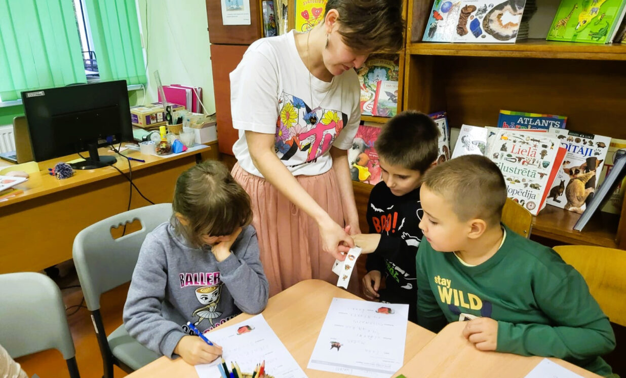 Nodarbības laikā abas bibliotekāres iejutās stāsta varoņu lomās un kopīgi nolasīja fragmentu no grāmatas. Pēc lasījuma bērni pildīja dažādus radošus uzdevumus – atbildēja uz jautājumiem, domāja par stāsta mācību un pat mēģināja rakstīt ar “ačgārno” jeb otru roku, kā to darīja grāmatas varoņi. Par centību un aktīvu līdzdarbošanos visi saņēma uzlīmes ar lasošiem zvēriem.