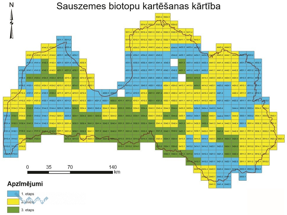 Apsekojamās teritorijas sadalītas pa kvadrātiem, un katru gadu paredzēts apsekot noteiktu kvadrātu skaitu. Šogad apsekošanu plānots sākt daļā Vidzemes, Latgales un Kurzemes, tai skaitā aizsargājamās dabas teritorijās - Gaujas Nacionālajā parkā, Ķemeru Nacionālajā parkā, Lubāna mitrājā, aizsargājamo ainavu apvidū Augšdaugava, Dvietes palienē un Vidzemes akmeņainajā jūrmalā.