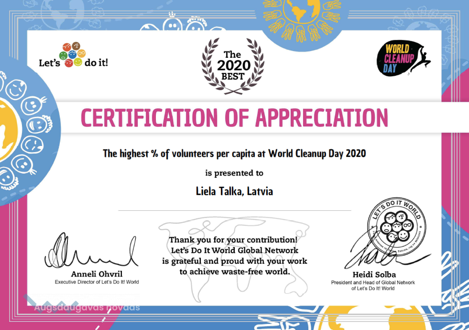 Lielās talkas vadītāja Vita Jaunzeme: “Lielās talkas vārdā sakām jums paldies par to, ka palīdzējāt mums sasniegt tik nozīmīgu rezultātu. Bez Jums tas nebūtu iespējams! Jūs esat mūsu galvenais atbalsts kā pavasara, tā arī rudens Lielajā talkā. Zinām, ka vienmēr varam paļauties uz jūsu degsmi ar kādu strādājat mūsu visu kopīgā mērķa labā.”