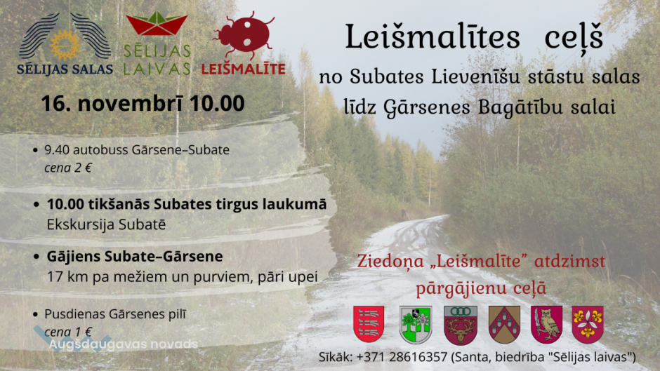 Valsts svētku brīvdienās, 16.11., sestdienā, aicinām pievienoties pārgājienam pa Leišmalīti, daļa no šī ceļa ir arī Daugavpils novads.