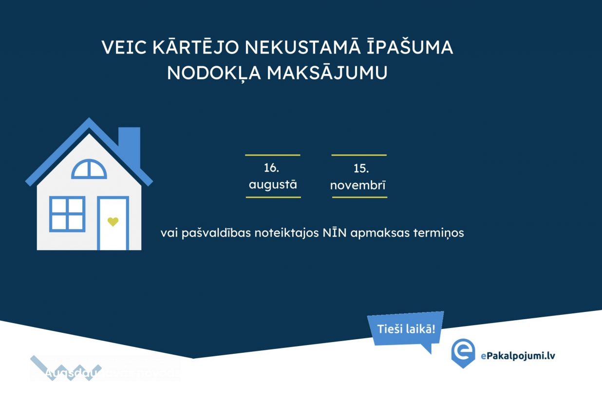 Līdz 16. augustam veicams nekustamā īpašuma nodokļa maksājums