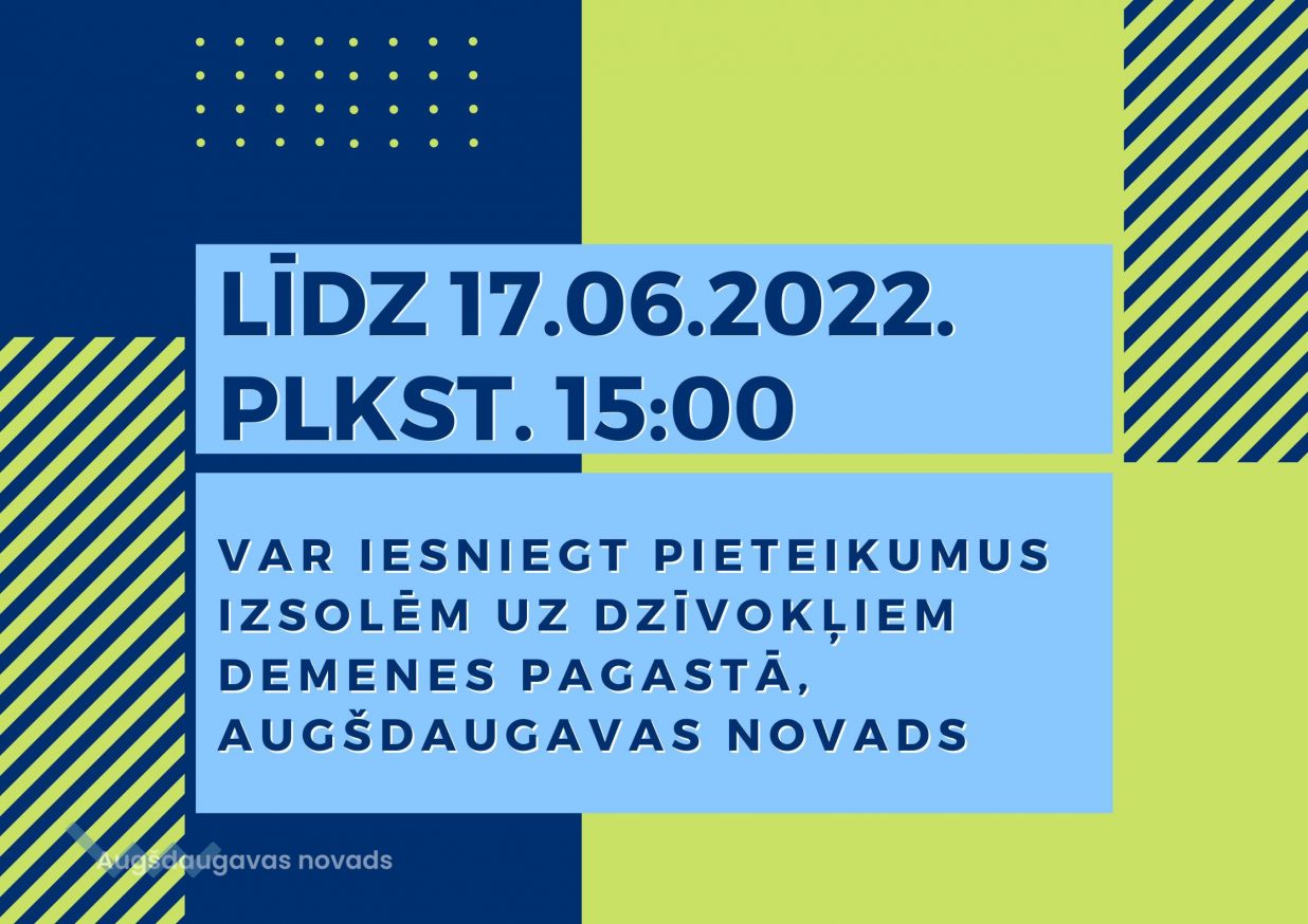NovadsAktualitātesJaunumiLīdz 17.06.2022. plkst. 15:00 vēl var iesniegt pieteikumus izsolēm uz dzīvokļiem Demenes pagastā