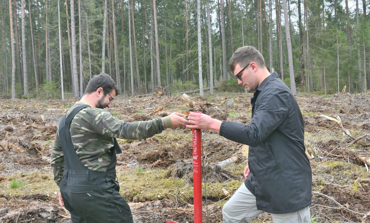 “Te LVM novākuši ražu, sagatavojām augsni, bet tagad stādam priedītes, lai mūsu mazbērniem būtu mežs,” turpina LVM Sventes iecirkņa mežkopis Aivars Litiņš.