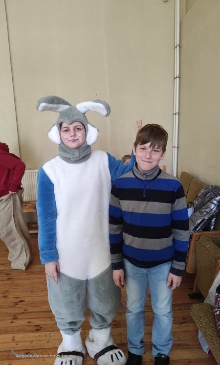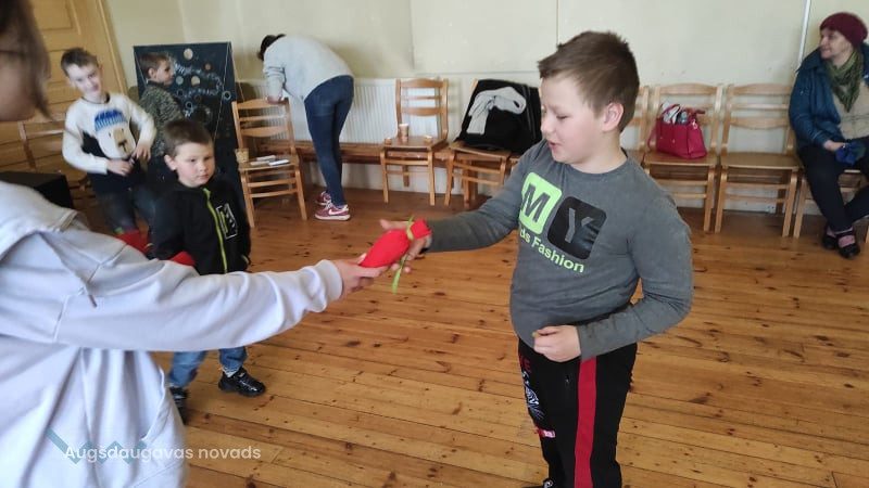 Kopā ar brīvpratīgiem jauniešiem no Jauniešu centrā, bērni piedalījās jautrās stafetēs. Īpaši bērniem iepatikās burkānu mešana un  cāļu lidināšana. Pats aktīvākais bija Bogdans,  kurš tika apbalvots ar saldām dāvanām. Pasākuma laikā katrs varēja pacienāties ar garšīgam kēksiņiem-zaķīšiem. Lai ar šiem svētkiem turpinās pozitīva un radoša dzīve mūsu pagastā!