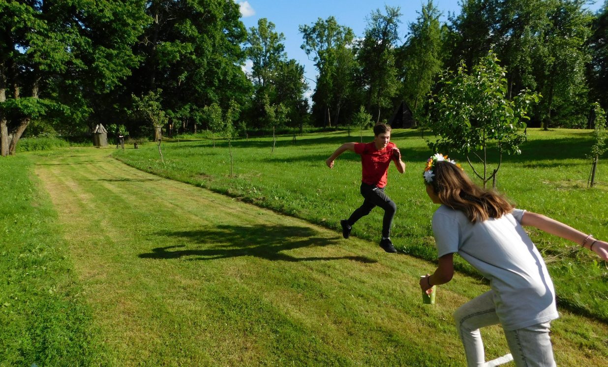 Pasākumam sākoties, uzreiz sāka valdīt Līgo svētkiem raksturīgā atmosfēra, kas ļāva visiem jauniešiem noskaņoties turpmākajām Līgo aktivitātēm. Ar sirsnīgām uzrunām pasākuma dalībniekus priecēja Jāņa Raiņa mājas direktore Inese Bērziņa un Augšdaugavas novada bērnu tiesību aizsardzības speciāliste Natālija Pēterāne, kam sekoja Līgo tematikai sagatavotās stafetes Raiņa mājas dārzā.