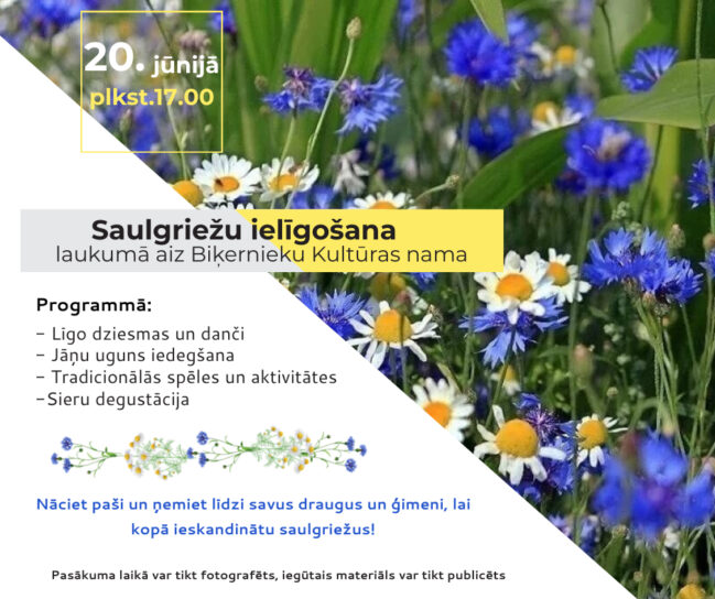 20. jūnijā 17.00 Laukumā pie Biķernieku Kultūras nama ielīgošanas pasākums.