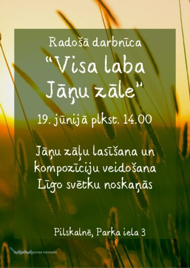 19. jūnijā 14.00 Pilskalnē, Parka ielā 3, radošā darbnīca “Visa laba Jāņu zāle”