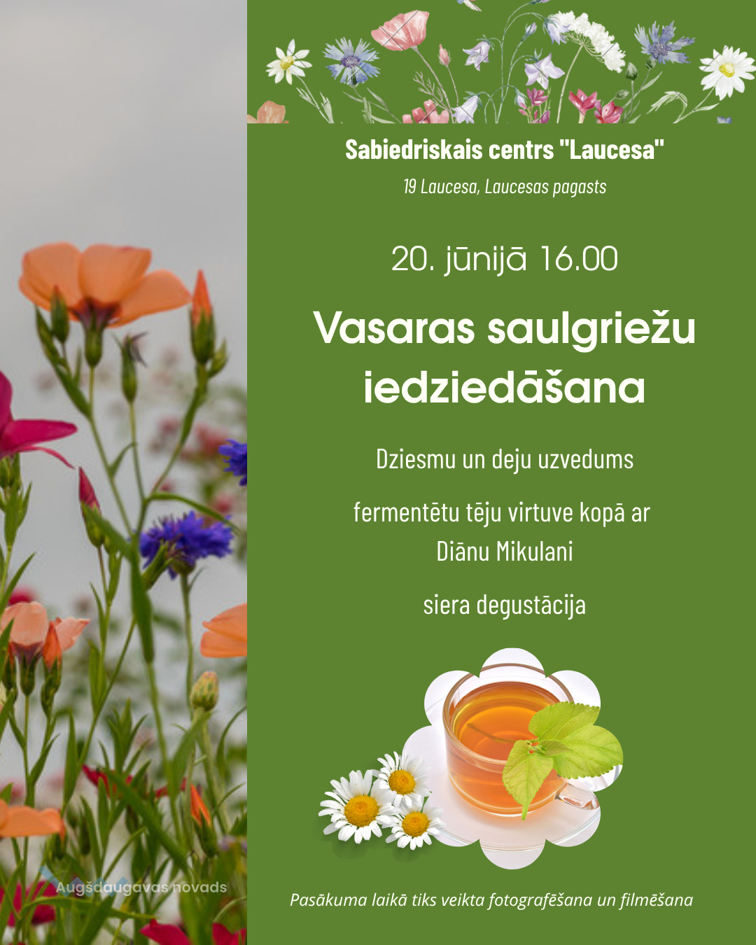 20. jūnijā 16.00 Vasaras saulgriežu iedziedāšana. Koncerts un sarunas par tējām.