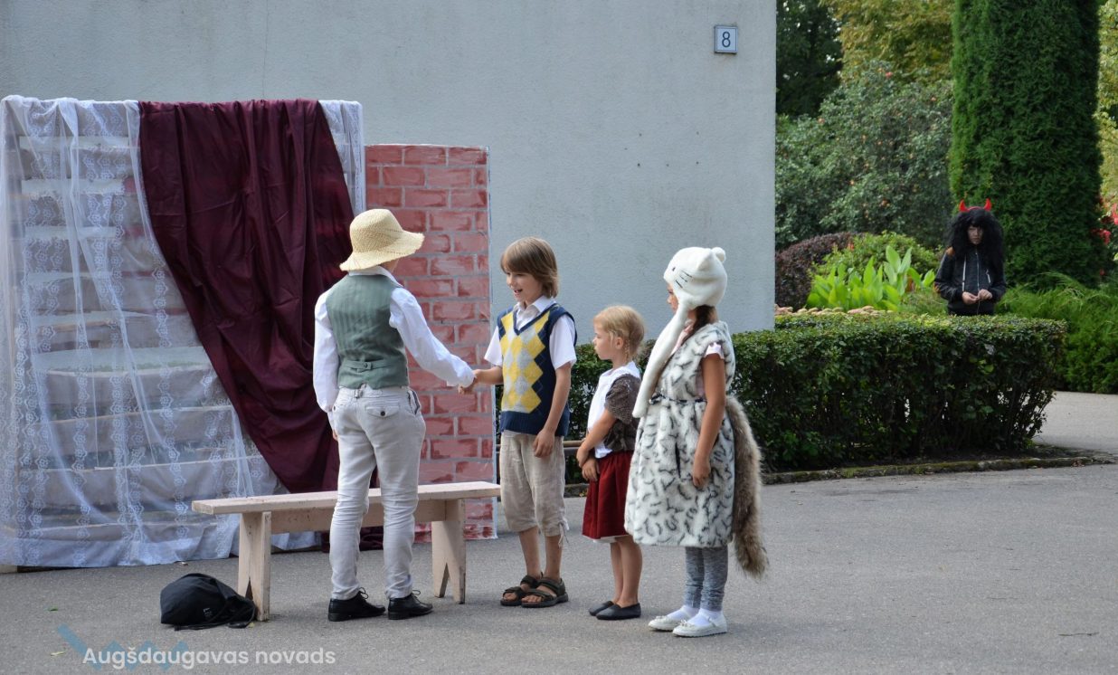 Mazo pirmklasnieku - Māras Kārkliņas, Ralfa Salieša, Maksima Savuļa un Mihaila Bogdanova gatavību skolai pārbaudīja Pepija Garzeķe, kas pati bija jau gatava doties uz skolu.