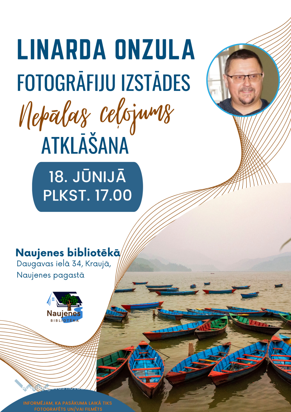 18. jūnijā Naujenes bibliotēkā tiks atklāta Linarda Onzula personālizstāde “Nepālas ceļojums”. Linards ir fotogrāfs, tautas fotostudijas “Ezerzeme-F” biedrs, kas dzīvo un darbojas Kraujā, kā arī citur. Izstādē būs redzamas fotogrāfijas, kas tapušas Nepālā 2022. gada aprīlī. Atklāšanas pasākumā Linards dalīsies iespaidos par braucienu uz Nepālu, Himalaju kalniem, atbildot uz apmeklētāju interesējošiem jautājumiem.