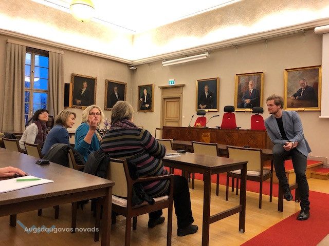 No 2. līdz 5. decembrim projekta LLI-341 „Aging in Comfort” partnerpašvaldību sociālie darbinieki, projektu koordinatori kopā ar vadošā partnera - biedrības Eiroreģions „Ezeru zeme” projekta pārstāvjiem bija mācību vizītē Borlänge, Zviedrijā. Brauciena mērķis bija gūt Zviedrijas pašvaldību pieredzi aprūpes mājās sociālo pakalpojumu nodrošināšanā, sevišķu uzmanību pievēršot vecāka gadagājuma cilvēku aprūpes mājās pieejamības nodrošināšanas praksei. Mācību vizītes laikā Borlänge pašvaldības pārstāvji izklāstīja sociālās jomas politiku, bija iespējams iepazīt e-sistēmu, ar kuras palīdzību tiek plānota sociālo pakalpojumu sniegšana klientiem, tika prezentēts iespaidīgs palīglīdzekļu klāsts, īpaši pašaprūpes palīgierīces, tika apmeklētas vairākas mobilo brigāžu vienības, dienas centrs cilvēkiem ar demenci, tuvinieku atbalsta centrs, gūstot priekšstatu par aprūpes mājās pakalpojuma sniedzējiem, kuri nodrošina integrētu pieeju veselības un sociālajiem pakalpojumiem. Brauciena laikā norisinājās galda diskusijas ar iestāžu vadītājiem, kā arī speciālistiem, kas strādā ar klientiem un izvērtē viņu vajadzības, projekta partnerpašvaldību sociālie darbinieki dalījās ar Latvijas un Lietuvas pieredzi. Sociālā palīdzība un sociālais atbalsts Zviedrijā ir attīstīts augstā līmenī, tādēļ šādas mācību vizītes ir ļoti vērtīgas, ļaujot saskatīt citu praksē balstītas sociālo pakalpojumu pilnveides iespējas, ko īstenot Daugavpils novada pašvaldībā. Biedrība Eiroreģions „Ezeru zeme” sadarbībā ar 4 pašvaldībām Latgalē, 2 pašvaldībām Lietuvā uzsākusi projekta „Senioru sociālā iekļaušana” (Nr. LLI- 341) jeb “Aging in Comfort” īstenošanu, kura mērķis ir uzlabot aprūpes mājās sociālo pakalpojumu kvalitāti. Kopējās projekta izmaksas ir 449 029,21 EUR. Projekta līdzfinansējums no Eiropas Reģionālās attīstības fonda ir 381 674,80 EUR. Projekta ilgums 18 mēneši. Par šīs publikācijas saturu pilnībā atbild Daugavpils novada pašvaldība, un tas nekādos apstākļos nav uzskatāms par Eiropas Savienības oficiālo nostāju. Programmas tīmekļa vietne www.latlit.eu Oficiālā ES tīmekļa vietne www.europa.eu Papildus informācija: Projekta koordinatore Juta Valaine Mob. +371 65476882 e-pasts: juta.valaine@dnd.lv