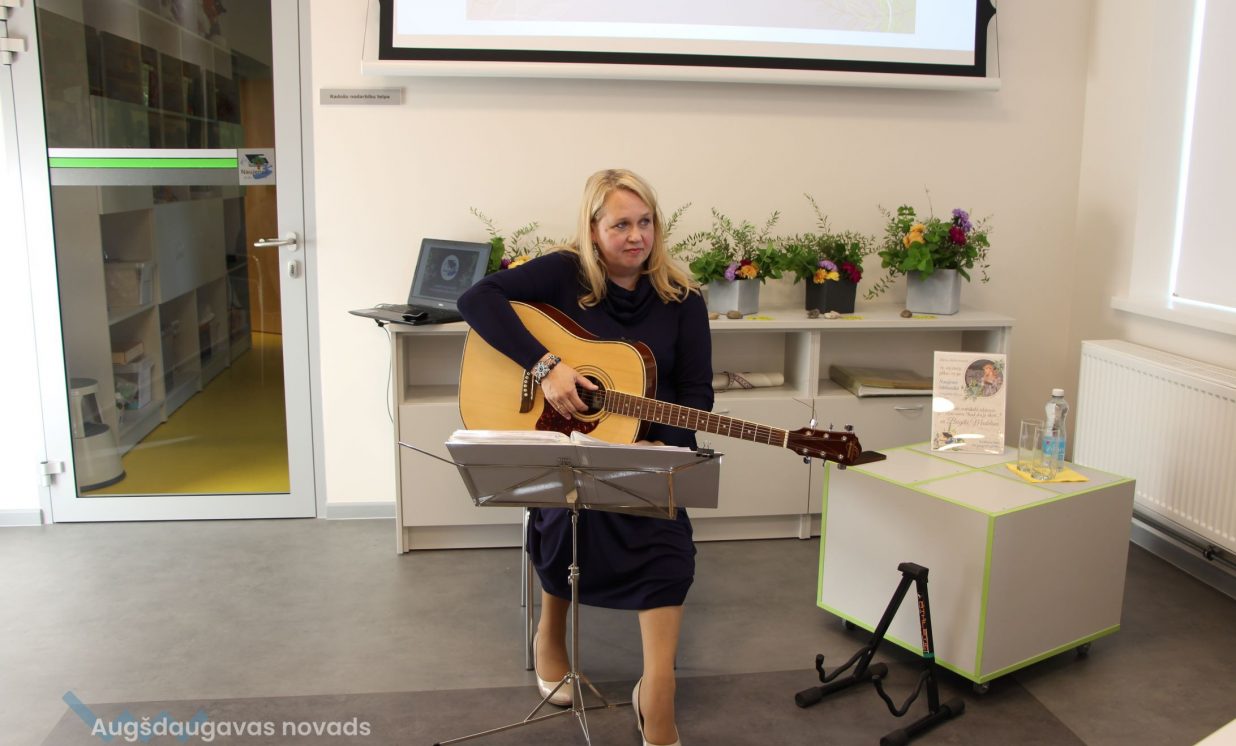 Naujenes bibliotēkā noritēja tikšanās ar dziesminieci Brigitu Madelāni