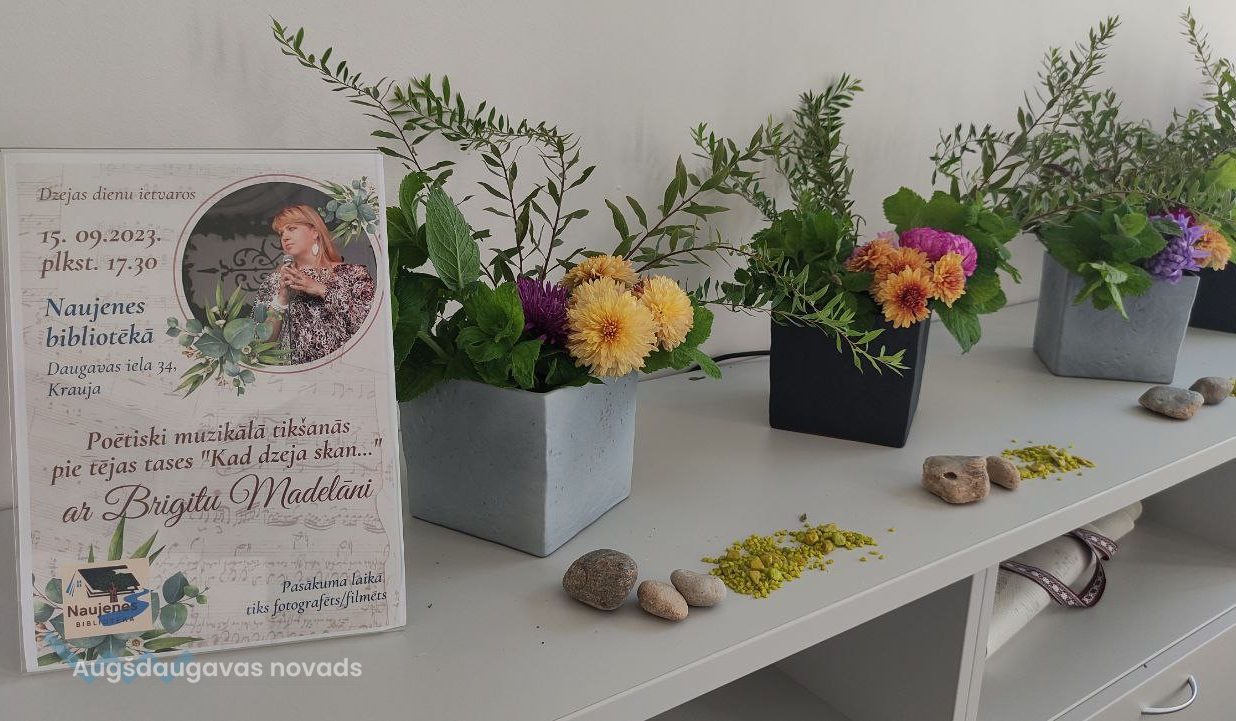 15. septembrī Naujenes bibliotēkā norisinājās poētiski muzikāla tikšanās pie tējas tases “Kad dzeja skan…”, kuras laikā klausītāji varēja iepazīties ar dziesminieci Brigitu Madelāni.