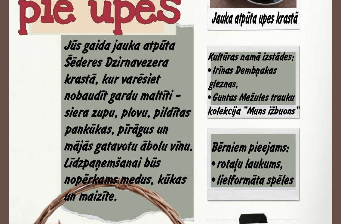 Adrese: Skolas iela 2, Šederes ciems, Augšdaugavas nov. Kontakti: 28302714 Rita Butkeviča Darba laiks: 11.00 – 15.00 Ēdienkarte: Plovs, siera zupa, pildītas plānās pankūkas, mini kūciņas glāzītē, dažādu veidu rausīši, mini picas, biezpienmaize, bezrauga sēklu un augļu maize, medus kūkas, dažādi medus produkti, liepziedu tēja.