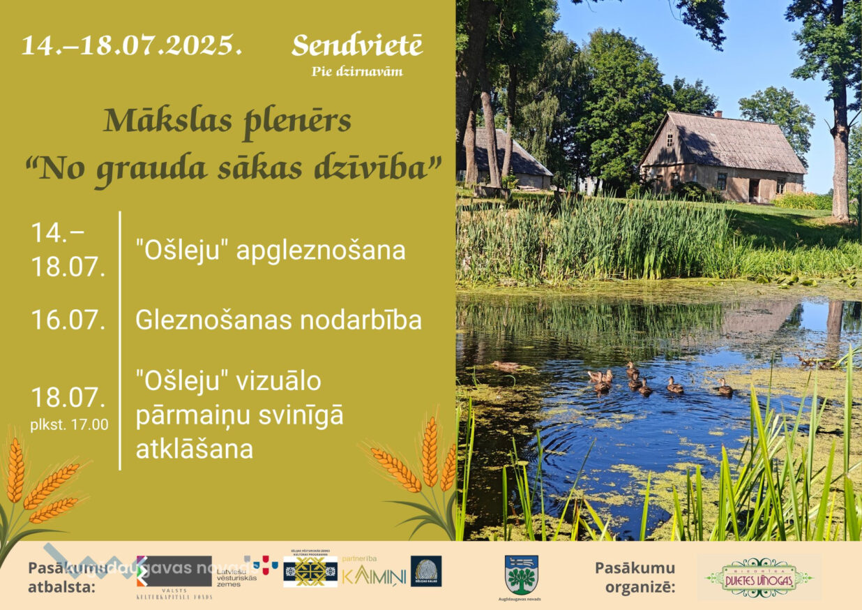 Trešdien, 16.07. interesentiem tiks piedāvāta bezmaksas gleznošanas nodarbība. Aptuvenais norises laiks 15.00, pieteikšanās zvanot t. 26369215 – vietu skaits ierobežots. Piektdien, 18.07. plkst. 17.00 pie dzirnavām norisināsies “Ošleju” vizuālo pārmaiņu svinīga atklāšana ar stāstiem un dziesmām. Pakāpeniski labiekārtojot teritoriju, “Ošleju” apgleznošana būs kā vēl viens puzles gabaliņš Sendvietes atjaunošanā un mūsu kopienas tradīciju godināšanā. “Ošleju” vēstures stāsts ir īpašs arī ar to, ka šajā ēkā bērnību pavadījis Lāčplēša Kara ordeņa kavalieris Jānis Leškevičs. Mākslas plenērs norisināsies ar Sēlijas kultūras programmas finansiālu atbalstu. Plenēra noslēgumā gaidāmi vēl citi vizuāli informatīvi notikumi, ko atbalsta Augšdaugavas novada pašvaldība.