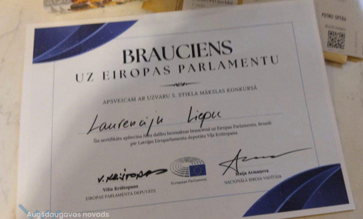 Pasniedzot apbalvojumus konkursa organizatori ir sagatavojuši pārsteiguma balvu vecākās grupas laureātiem - ceļojumu uz Eiroparlamentu Briselē, kurā Laurencija Liepa dosies 2025.gada sākumā.