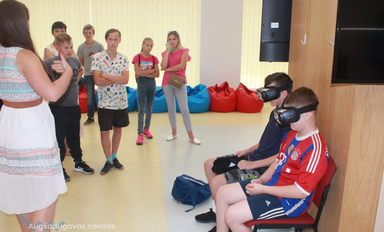27.augustā saulainā otrdienā Maļinovas pagasta bērniem un jauniešiem bija iespēja izpētīt daudzas 21.gadsimta tehnoloģijas, viesojoties Latgales centrālā bibliotēkā. Ģimenes digitālo aktivitāšu centra kolektīvs laipni pieņēma ekskursijas dalībniekus, pastāstot par centra piedāvātām aktivitātēm. Ikviens interesents varēja izkustieties, minot statīvā iestiprināta divriteņa pedāļus un ekrānā vērojot Austrumlietuvas un Dienvidlatvijas populārākos tūrisma objektus. Dažiem bija interesanti pamēģināt savas zināšanas KINECT kustību viktorīnā vai doties ceļojumā virtuālās realitātes brillēs pa Daugavpils, Utenas, Zarasu vai Preiļu kultūrvēstures objektiem. Paldies centra darbiniekiem par lielisko iespēju atpūsties ,lietderīgi pavadot vienu no pirmsskolas dienām! Paldies Maļinovas pagasta pārvaldei par atbalstu!