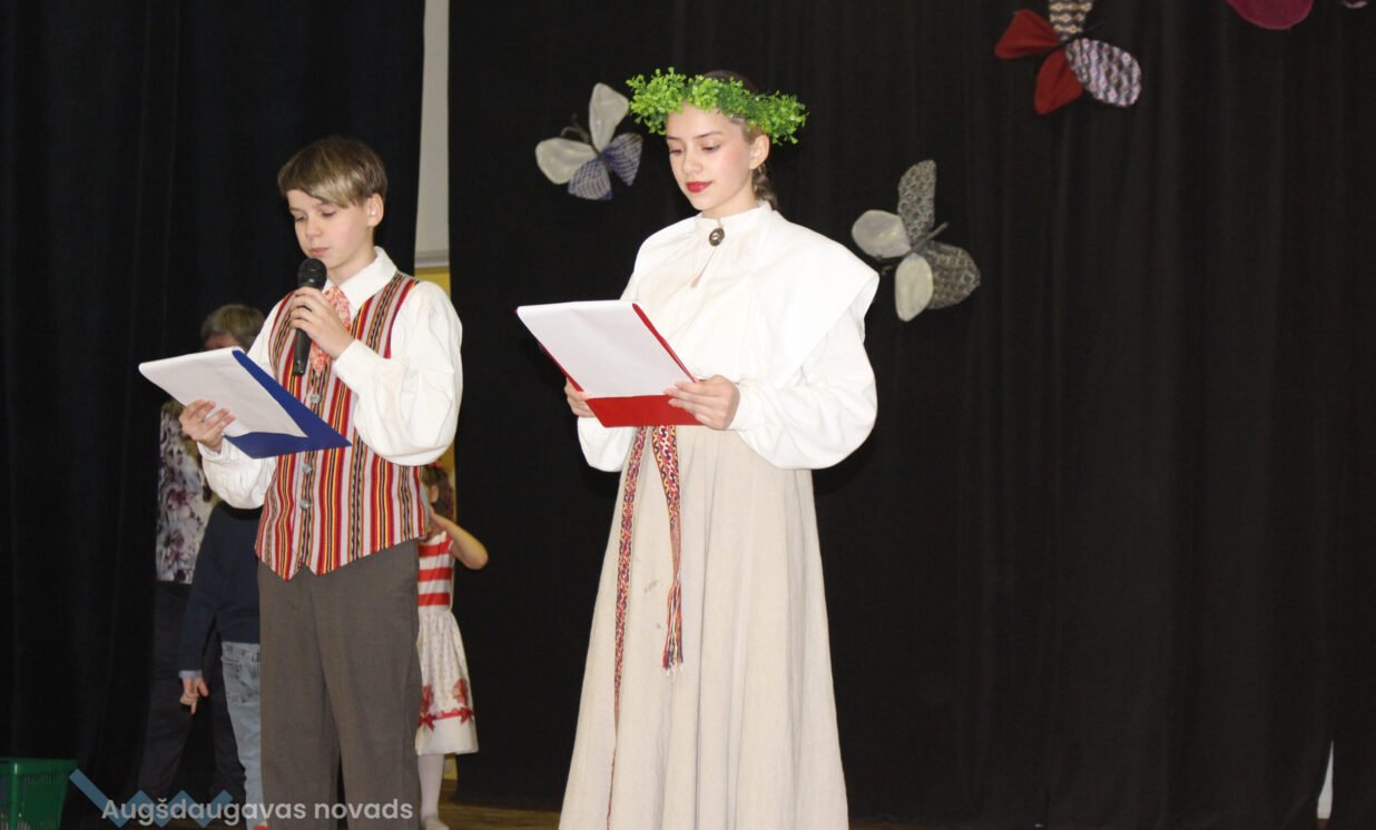 “Pavasarī māmiņas uzzied. Viņas kļūst krāsainas, košas, dzidras un skanīgas. Viņas priecājas par pirmo balto sniegpulkstenīti, zilo rotaļīgo vizbulīti, smaržīgo narcisi un krāšņajām daudzkrāsainajām tulpēm.” Tā koncertā laikā saka pasākuma vadītājs Mārcis no 7.klases.