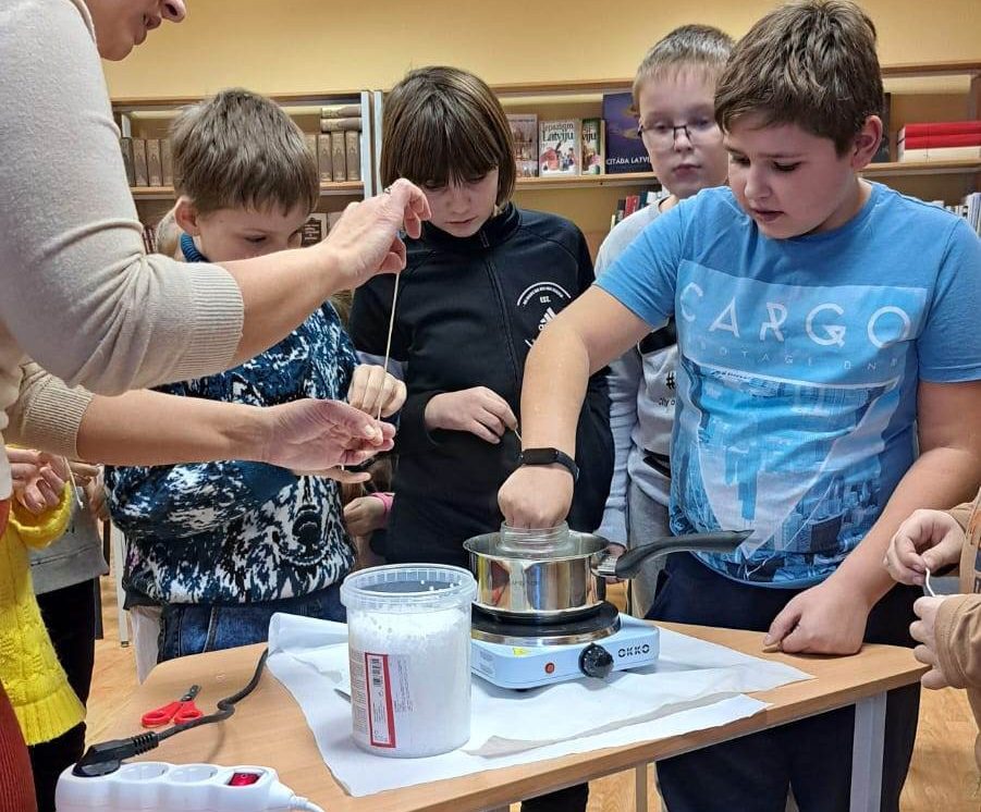 7. decembrī, Medumu pagasta bibliotēkā notika aromātiska un silta meistarklase "SVEČU LIEŠANA". Tā kā sākas sveču laiks, un drīz būs aizdedzinātā trešā Adventa svecīte, tad ar svētku noskaņu mēs veidojām savas svecītes. Bērni ar lielu prieku piedalījās meistarklasē – veidoja savas sveces formu, krāsoja tās un izvēlējas īpašu aromātu. Ar pieejamajiem materiāliem vienas stundas laikā bērni iemācījās izveidot skaistākās svecītes no pirmsākuma līdz gala rezultātam . Gaidot, kamēr sveces stabilizējas jeb sacietē, bibliotekārē Aelita Kožemjakina organizēja flešmobu, balstoties uz Ojāra Vācieša grāmatu "Sveču grāmata". Kā arī bērni uzzināja par Adventes sveču nozīmēm, novēlēja viens otram prieku, paņēma savu svecīti pilnu ar mīlestību un devās mājās.
