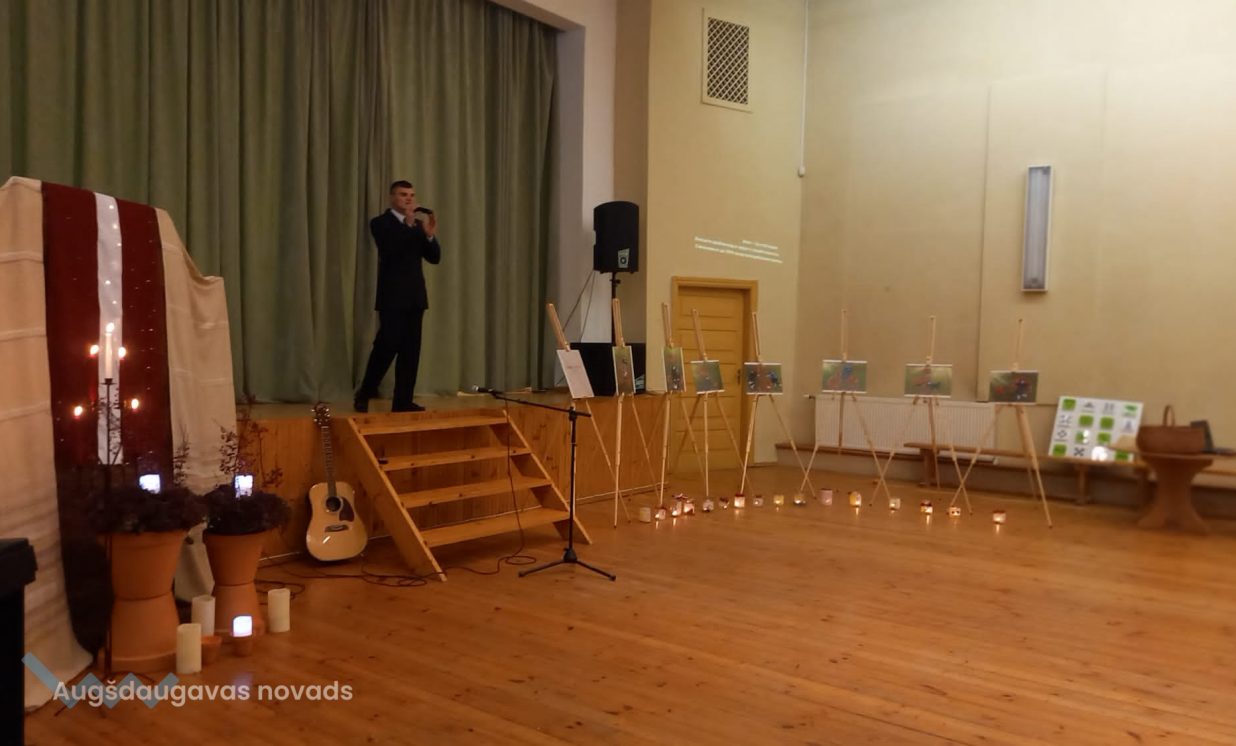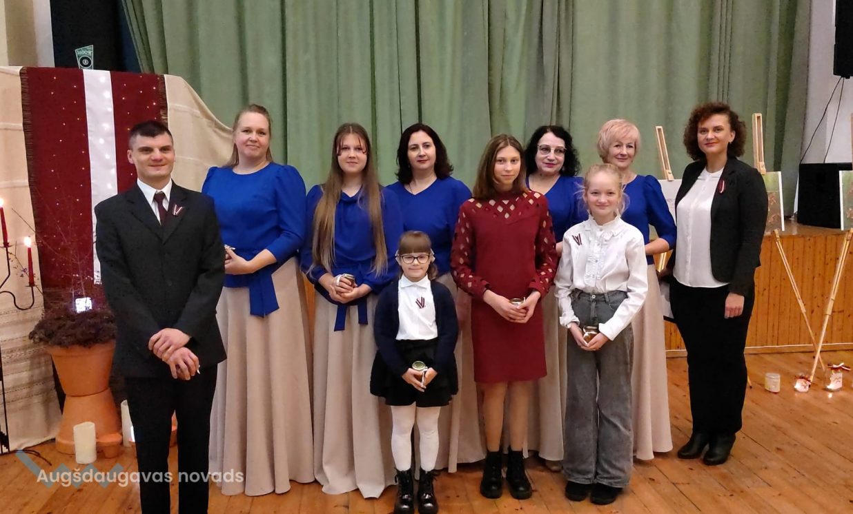 18. novembrī Medumu pagasta tautas namā ar svinīgu pasākumu tika atzīmēta Latvijas Republikas proklamēšanas 104. gadadiena. Pasākums sākās ar radošu darbnīcu, kurā izveidojām patriotiskus svečturus. Patīkami, ka darbnīcā piedalījās gan mazi, gan lieli. Radošā procesa laikā Medumu pagasta bibliotēkas vadītāja Aelita Kožemjakina sarīkoja izglītojošu viktorīnu par Latvju rakstu zīmēm.