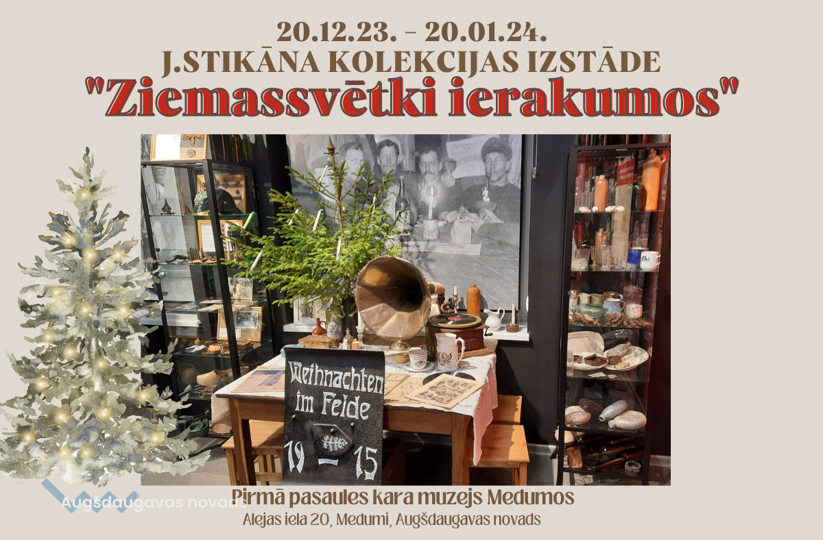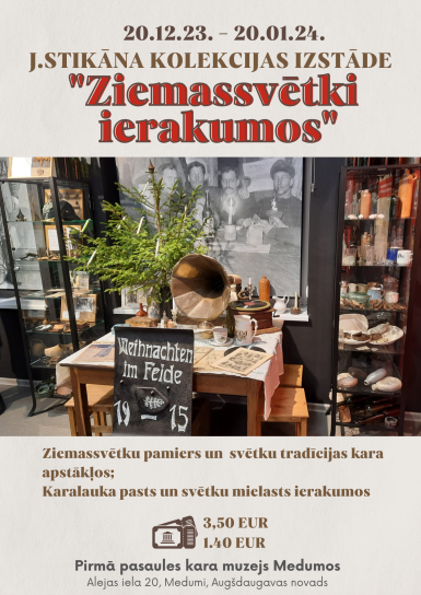 No 20. decembra Pirmā pasaules kara muzejā Medumos būs iespēja apskatīt jaunizveidoto Jura Stikāna ekspozīciju “Ziemassvētki ierakumos”. Šī ekspozīcija lielākoties ir veidota no priekšmetiem, kas atrasti Medumu apkaimē, liekot secināt, ka, neskatoties uz karu, karavīri šeit svinēja Ziemassvētkus. Muzeja gide Miropija Petkune izstāstīs par tradīcijām, kuras tika saglabātas un ieviestas, dzīvojot ierakumos. Apmeklētājiem būs iespēja noskatīties aizkustinošu video par slaveno Ziemassvētku pamieru 1914. gadā.