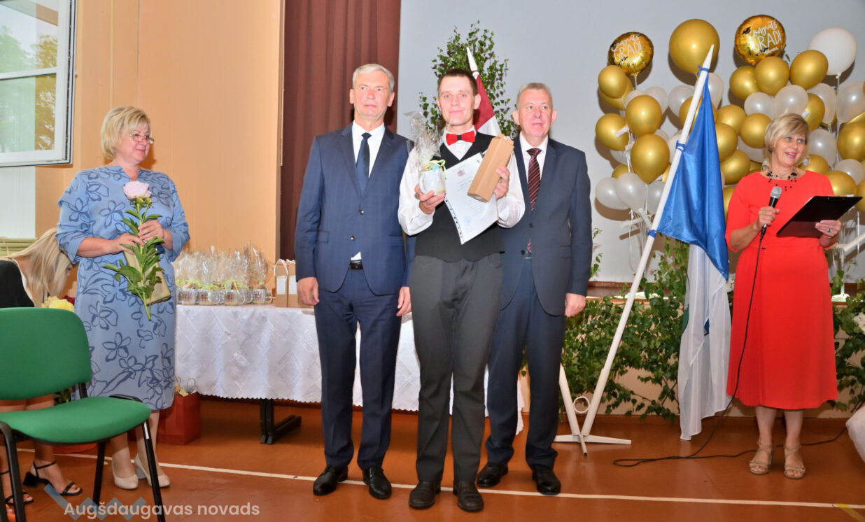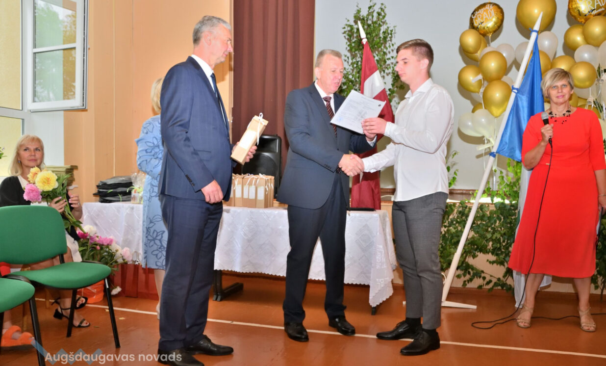Absolventus, skolotājus un visus klātesošos uzrunāja Augšdaugavas novada pašvaldības domes priekšsēdētāja vietnieks Vitālijs Aizbalts: “Man liels prieks būt šeit – Iespēju skolā! Vai izmantosiet jums dotās iespējas – atkarīgs tikai no jums, absolventiem. Pašvaldība pēc iespējas rūpējas par skolu, piemēram, lieliski darbojas jaunā, automatizētā katlumāja, kura tika uzstādīta pagājušgad. Šogad uzsāksim vēl vienu projektu pamatskolas ēku pārbūvei. Darām visu iespējamo sarežģītajos finansiālajos apstākļos.” V. Aizbalts arī izteica pateicību vecākiem par to, ka viņi iegulda lielus pūliņus bērnu audzināšanā.