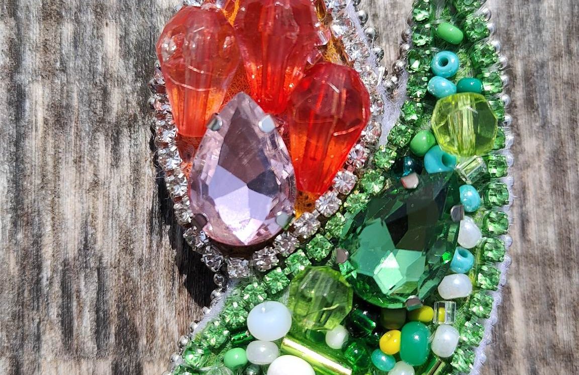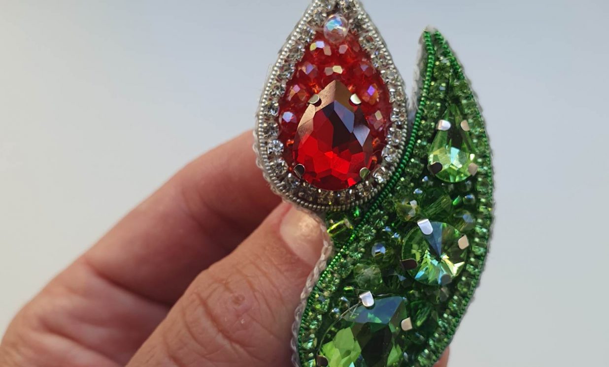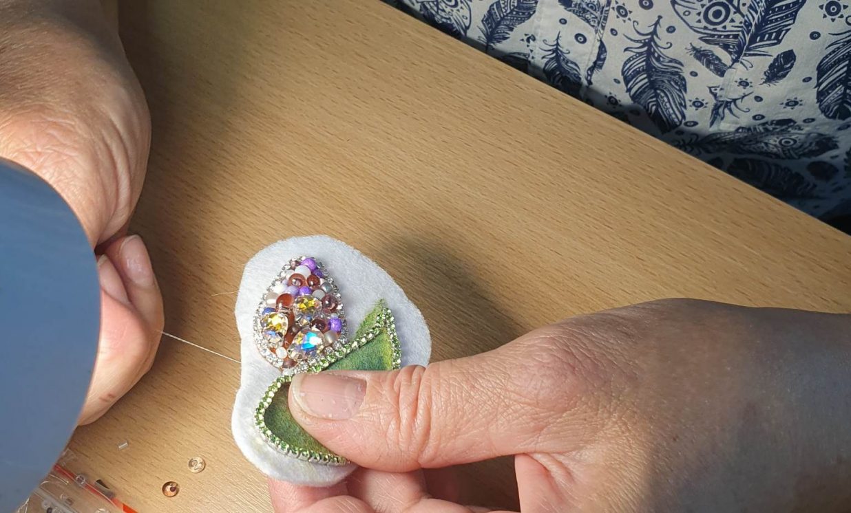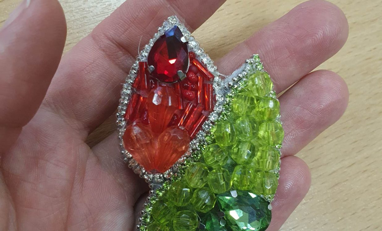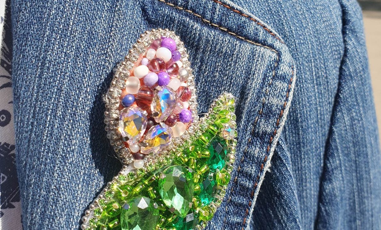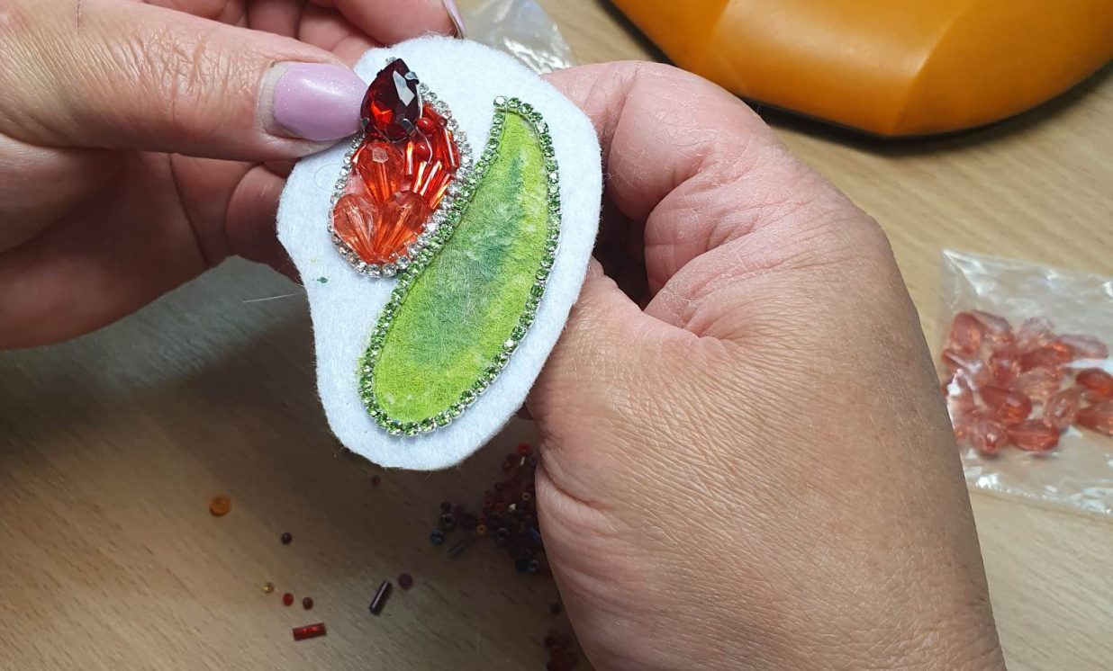 Un pēc četrām spraigām stundām izgatavoja piespraudes - pērlīšu tulpes.