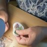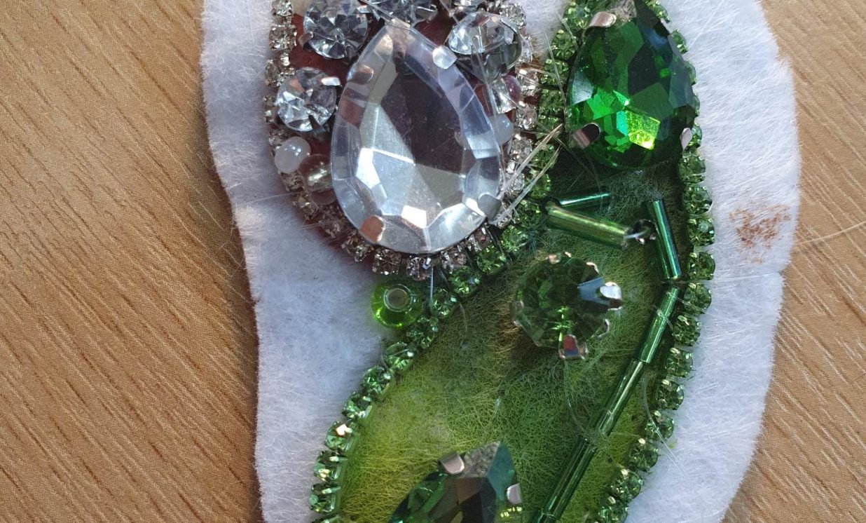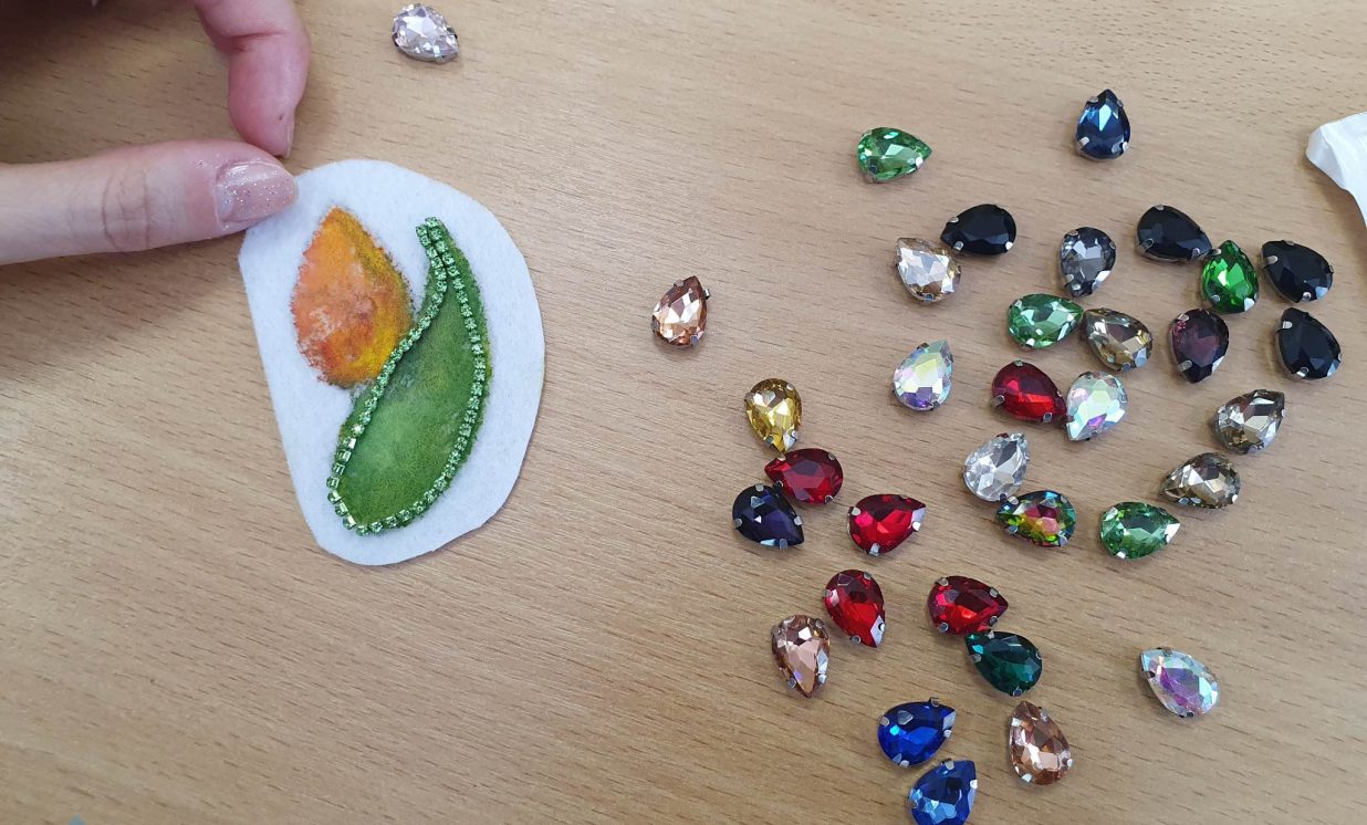 Uz galda dzirkstīja kristāli, pērlītes un krāsainas tulpju skices. Lai noskaņotos darbam, māmiņas nolēma uzdziedāt pa kādai tautasdziesmai.