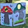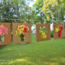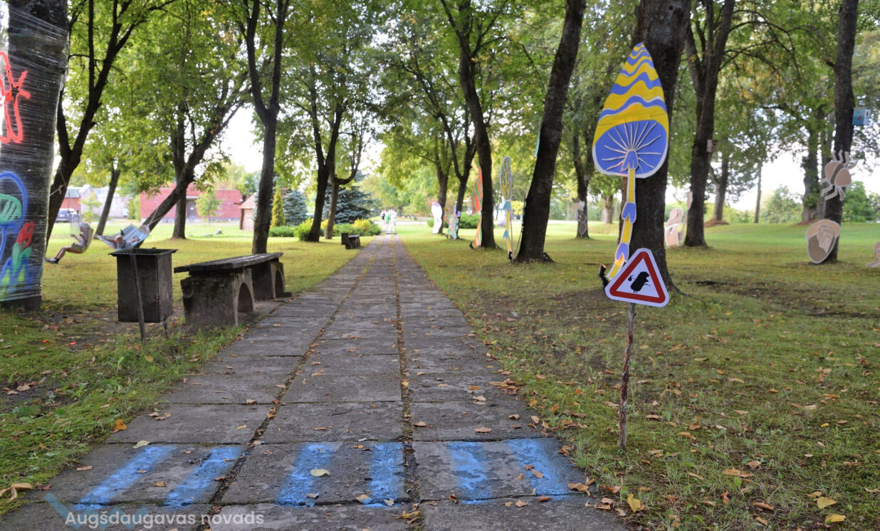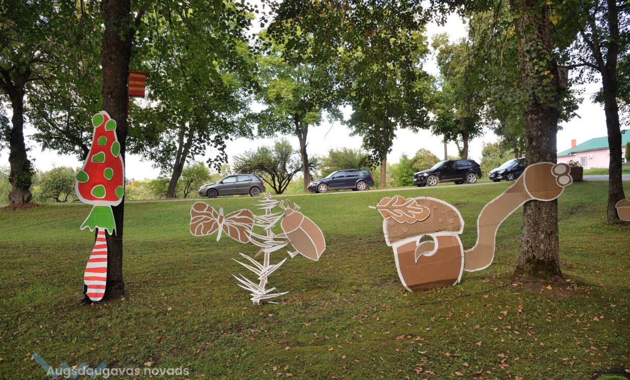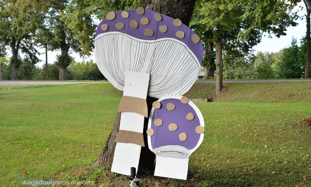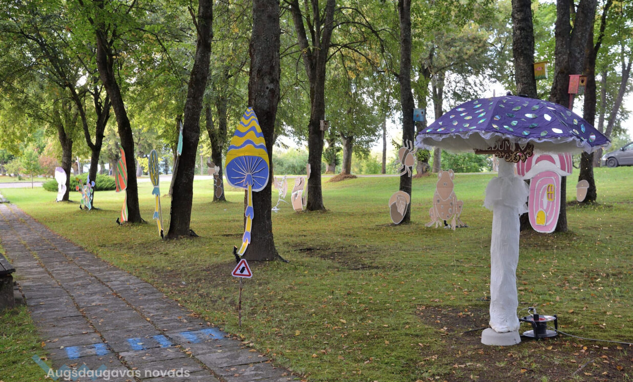 Pie Medumu Tautas nama varēja aplūkot krāsainu brīnumsēņu taku, ko no otrreizēja materiāla izveidoja Medumu rokdarbu pulciņš “Kaleidoskops”.