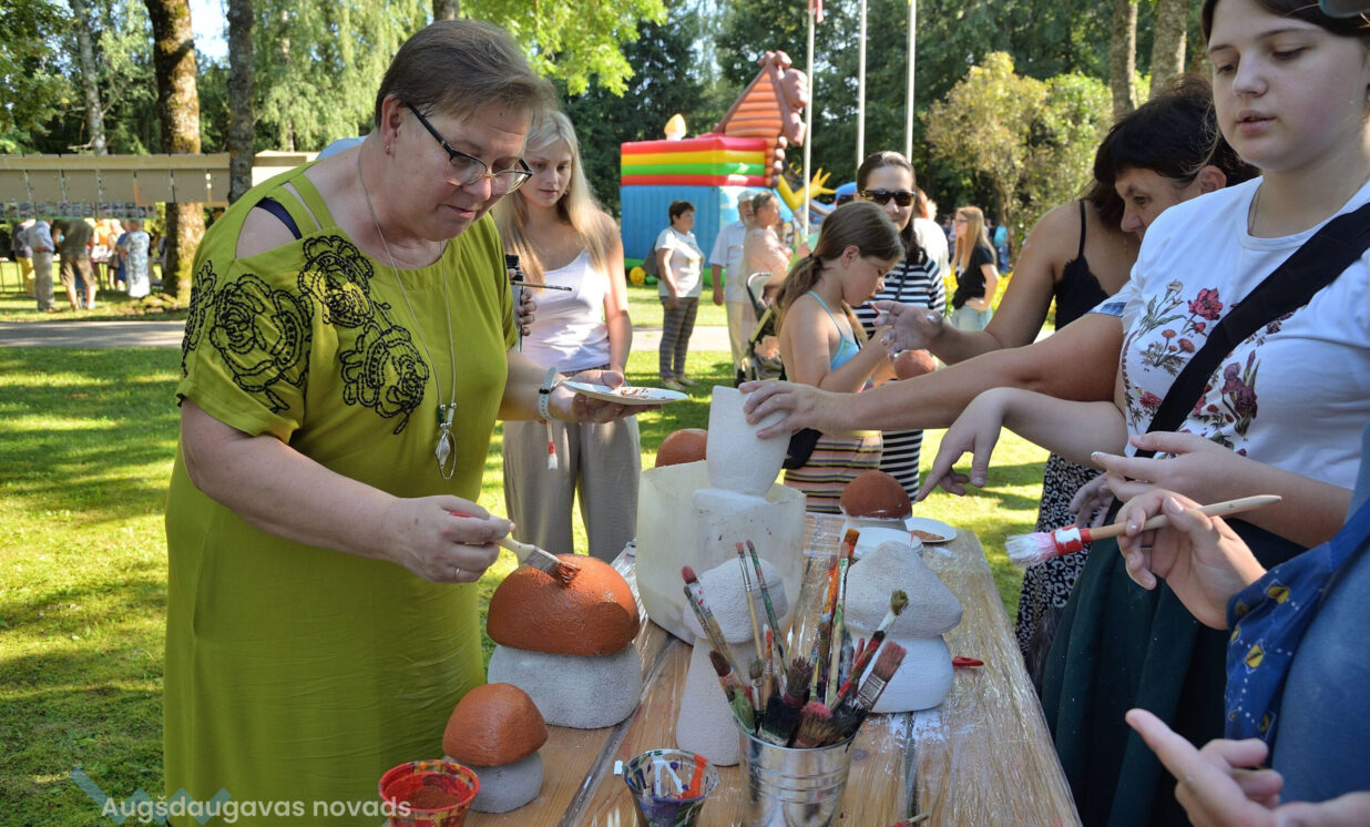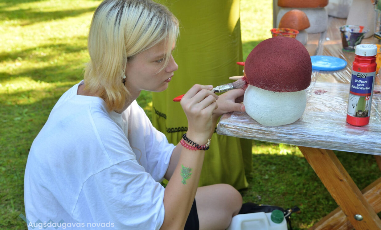 Gan lieli, gan mazi svētku apmeklētāji ar interesi iesaistījās Medumu rokdarbu pulciņa “Kaleidoskops” rīkotajās radošajās darbnīcās, kur ikviens varēja pats izgatavot sev īpašu sēņu dekoru. Amatnieks Valdis Grebežs mācīja no gāzbetona pagatavot skaistu sēņu dekoru dārzam.