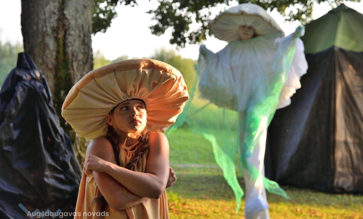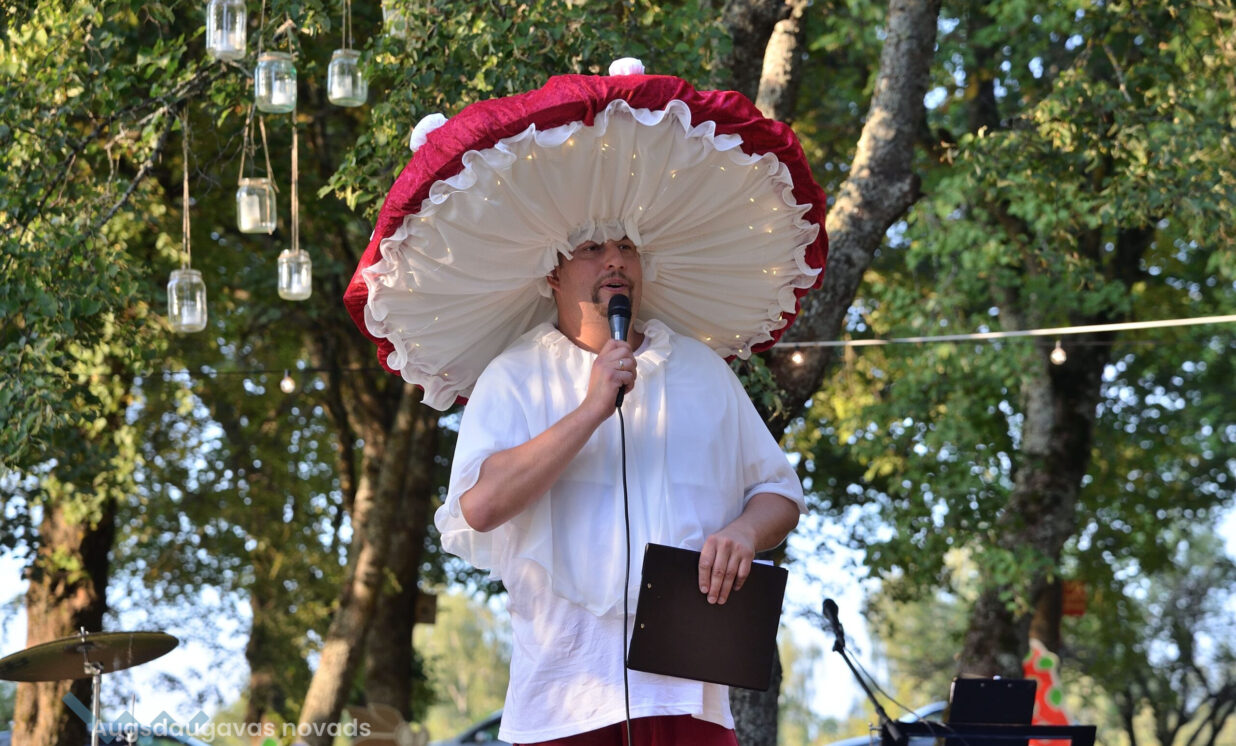 Pasākumā ar neparastu izrādi piedalījās Rīgas ielu teātris “FIKUS” (vadītāja Svetlana Kenecius), aizraujot gan mazus, gan lielus skatītājus ar sēņu mīlas un draudzības stāstu.