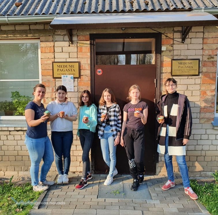 Meistarklases laikā kopā ar jauniešiem un pieredzējušām saimniecēm mēs gatavojām mūsdienīgos kuļičus . Saimnieces dalījās ar savām tradicionālām receptēm un tradīcijām. Pagatavojām kuļičus, izrotājām tos ar dažādiem krēmiem, kā arī iedzērām tēju ar tikko sagatavotiem gardumiem. Katrs paņēma sev līdzi kuļiču, lai būtu gaišas Lieldienas.