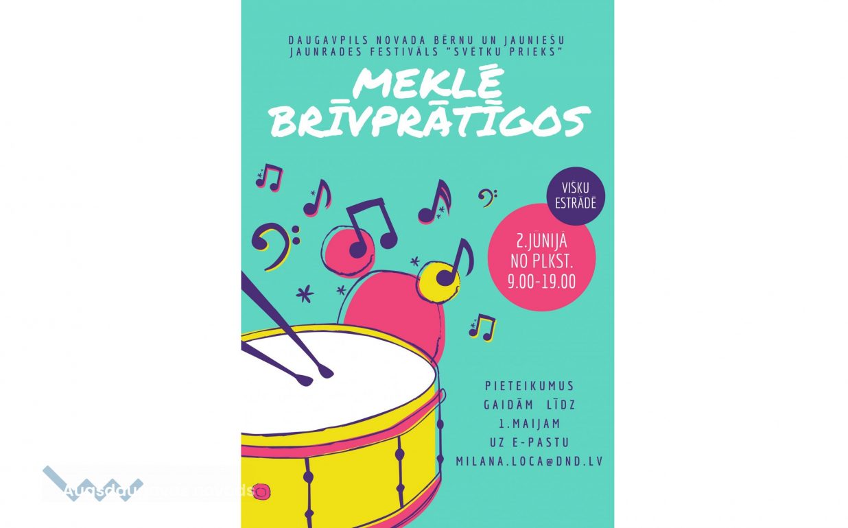 Daugavpils novada bērnu un jauniešu jaunrades festivāls "Svētku prieks" meklē brīvprātīgos jauniešus no 16 gadu vecuma. Brīvprātīgā darba ietvaros jauniešiem būs iespēja palīdzēt pasākuma koordinēšanā, pildot dažāda veida pienākumus. Pieteikumus gaidīsim līdz 1.maijam uz e-pastu milana.loca@dnd.lv. Pieteikumā lūgums norādīt vārdu, uzvārdu, vecumu, tālruņa numuru, kā arī vai būs iespēja pašam nokļūt uz svētku norises vietu. Brīvprātīgo ēdināšana tiks nodrošināta.