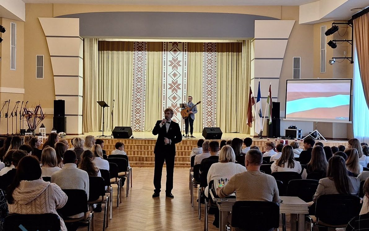 Mūziķi Emīls Kivlenieks un Kārlis Mangulsons iepazīstināja skolēnus ar izciliem latviešu sasniegumiem dažādās jomās Latvijā un pasaulē. Koncertlekcija ir vēstījums par Latviju kā iespēju zemi, no kuras nāk augsta līmeņa profesionāļi un izcilības, kas visi kopā veido Latviju.