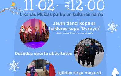 Svētdien, 11. februārī, plkst. 12.00 Līksnas pagasta kultūras nams aicina ikvienu piedalīties Meteņdienai veltītā pasākumā – ar jautriem dančiem, ko vadīs Augšdaugavas novada Kultūras centra “Vārpa” folkloras kopa “Dyrbyni”, kopā ar visu ģimeni piedalīties dažādās sporta aktivitātēs, doties izjādē zirga mugurā un cienāties ar pankūkām un veselīgu zāļu tēju, ko būs sagatavojušas čaklās aktīvo sieviešu … Continue reading Meteņi Līksnā