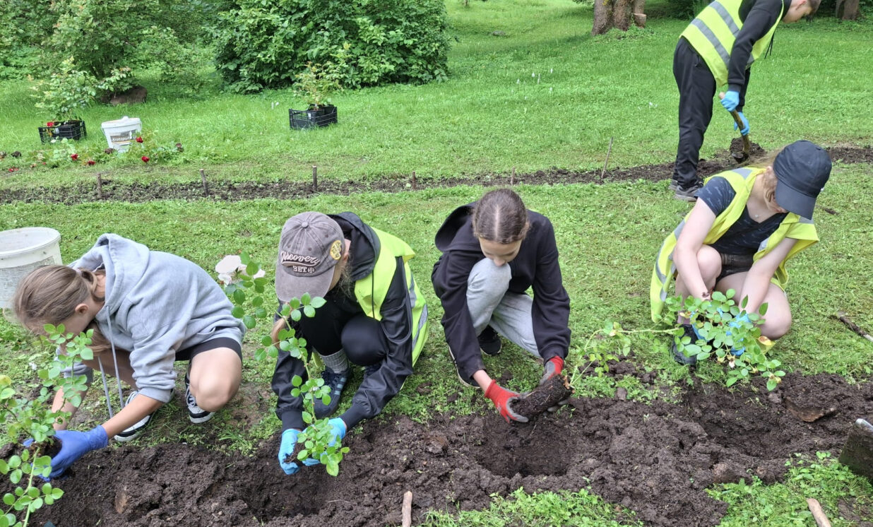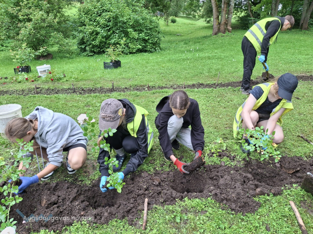 Projekta ietvaros Daugavpils mežniecības Pilskalnes apgaitas mežzine Sandra Surgovte izzinošā nodarbībā Ilūkstes Raiņa vidusskolas skolēniem stāstīja par mežu nozares saistību ar klimata pārmaiņām, meža un koku nozīmi ikviena cilvēka dzīvē. Kopīgiem spēkiem tika veikti apzaļumošanas darbi, kā arī iestādītas floribundrozes un vīteņrozes, kas ar laiku izveidos košu un skaistu papildinājumu Pilskalnes ainavai. Darbu procesā jaunieši uzzināja, kā pareizi stādīt rozes, kā tās kopt, kā arī mežzine atgādināja, cik nozīmīgi ir ikvienam rūpēties par dabu, to saudzēt un saglabāt.