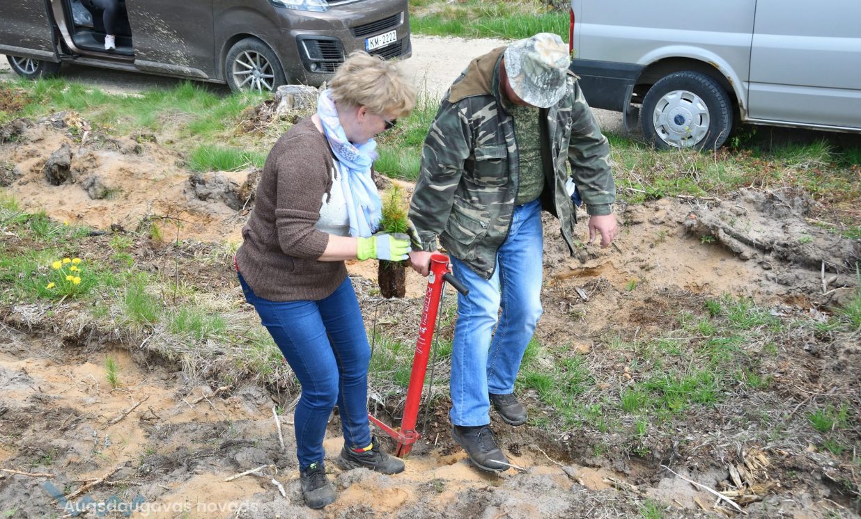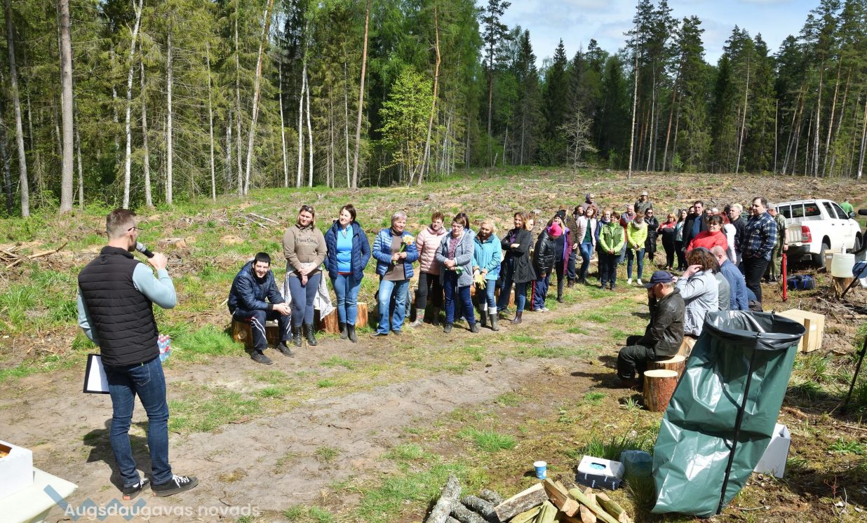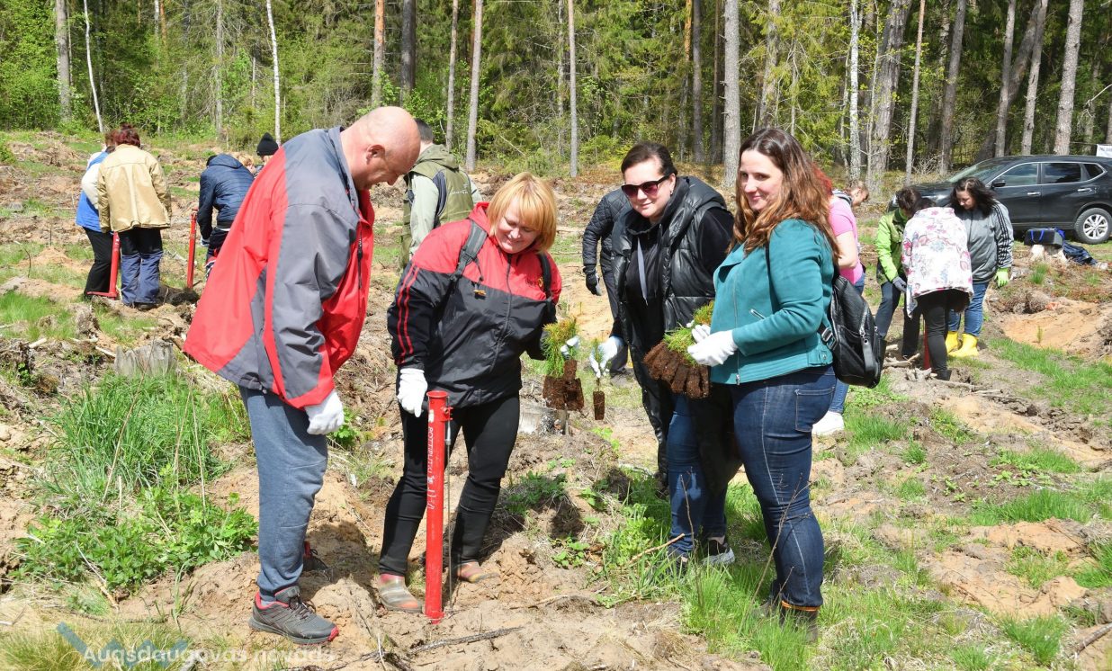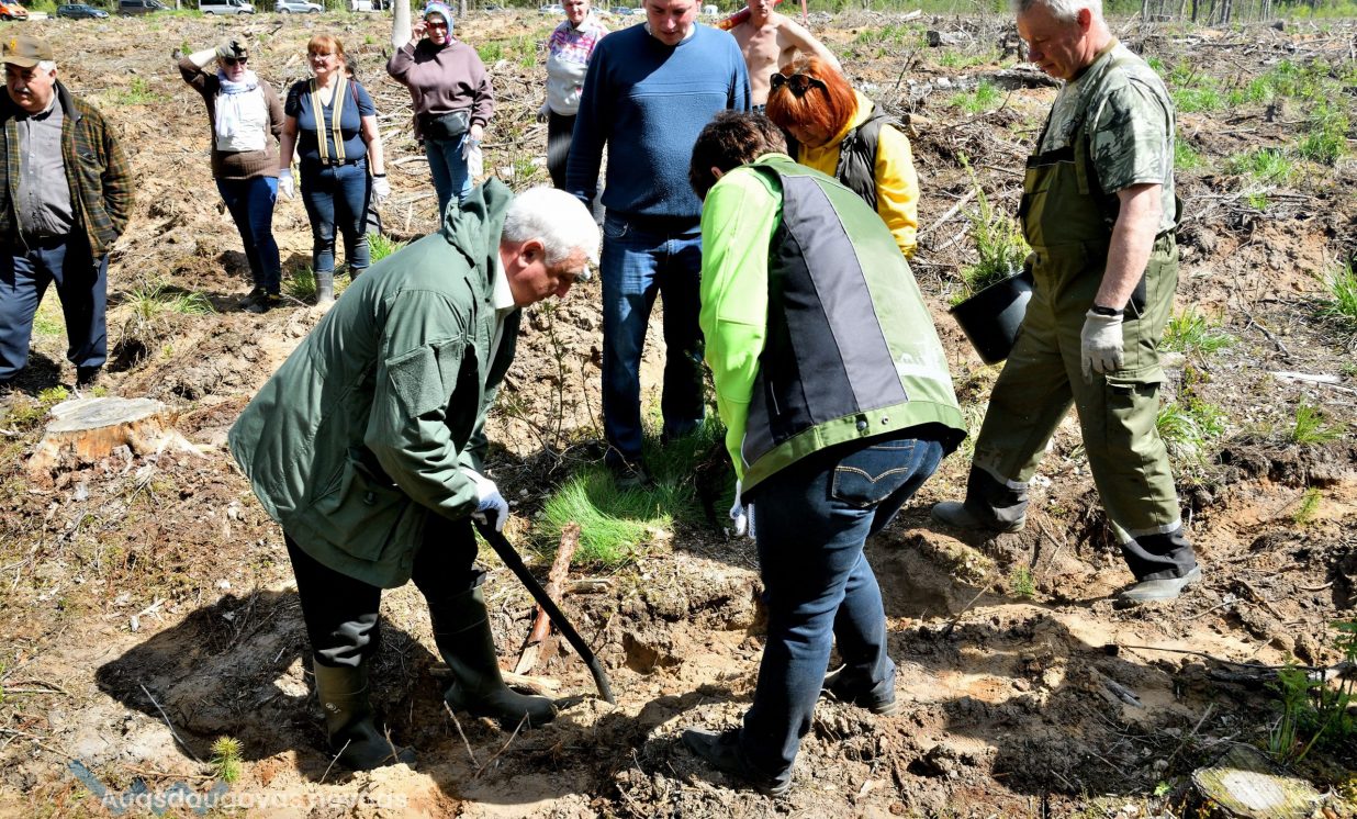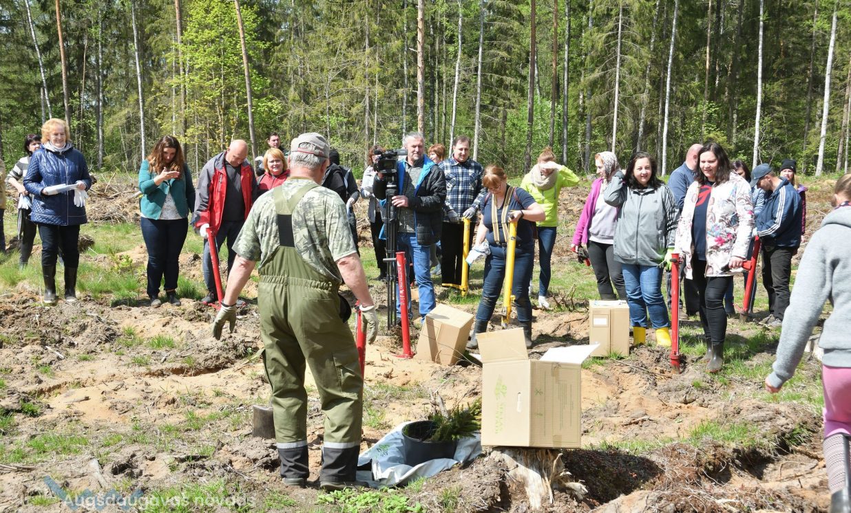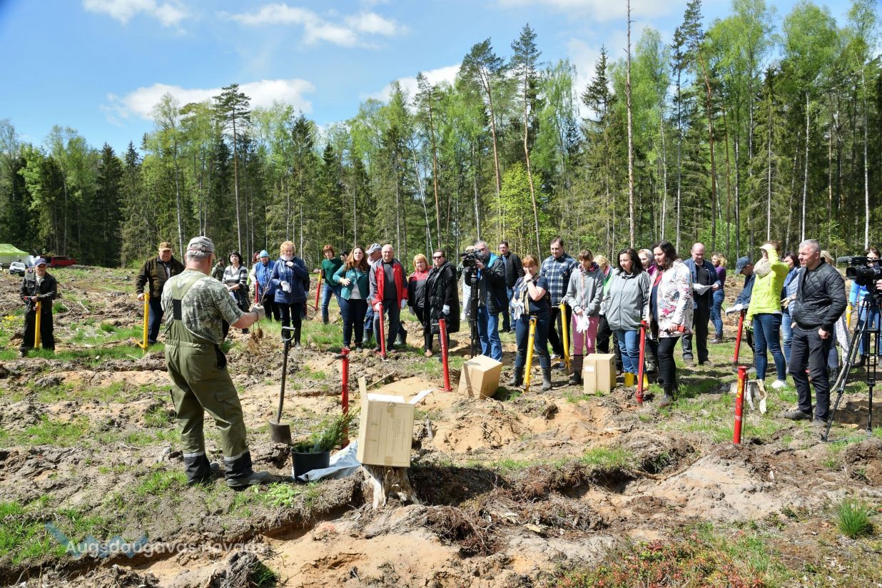 Pirms darbu sākšanas mežkopis Aivars Litiņš nodemonstrēja priežu un citu koku sugu stādiņus, un pamācīja stādīšanas tehnoloģiju.