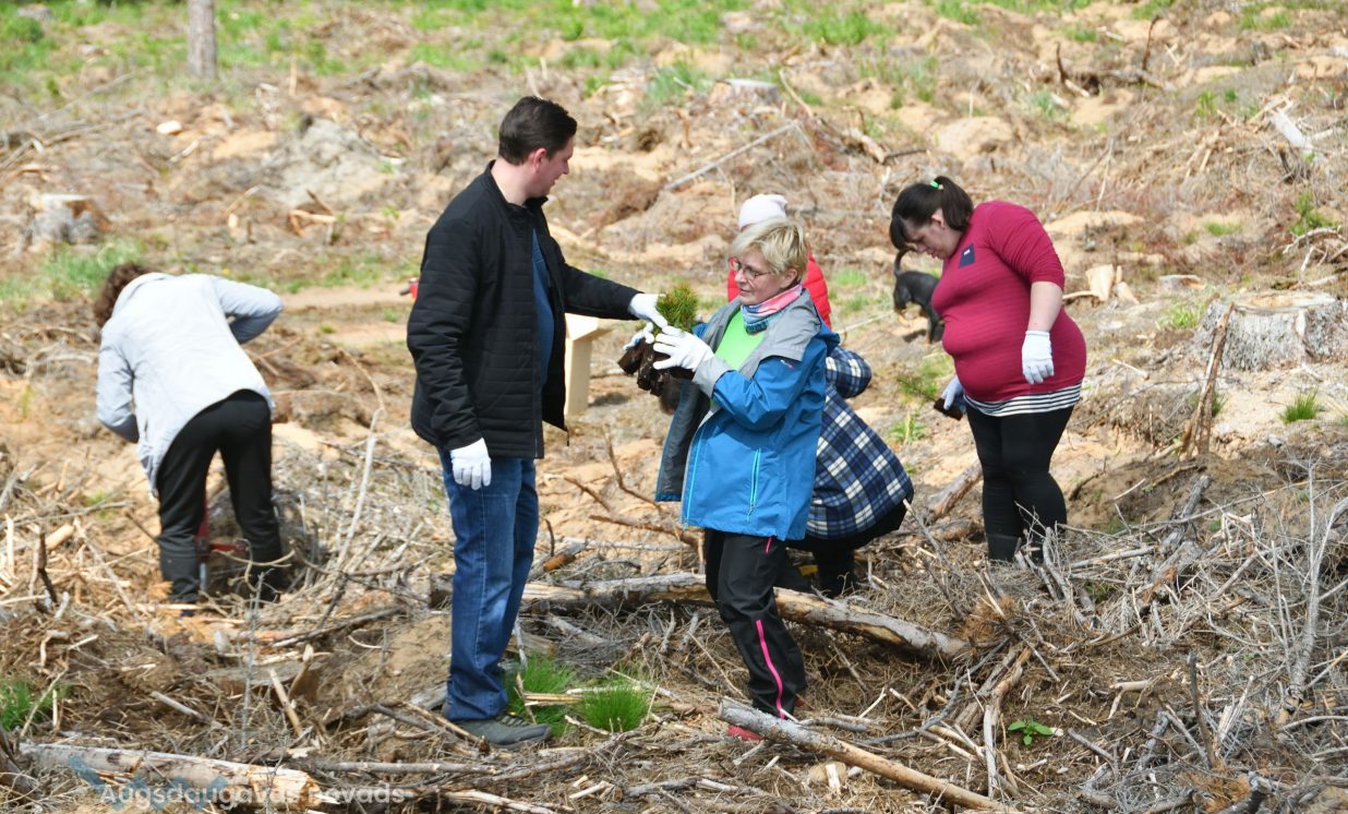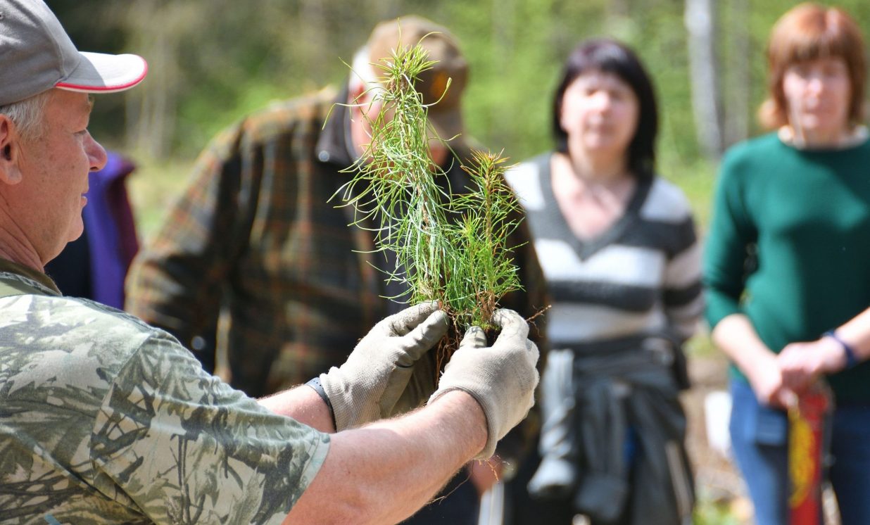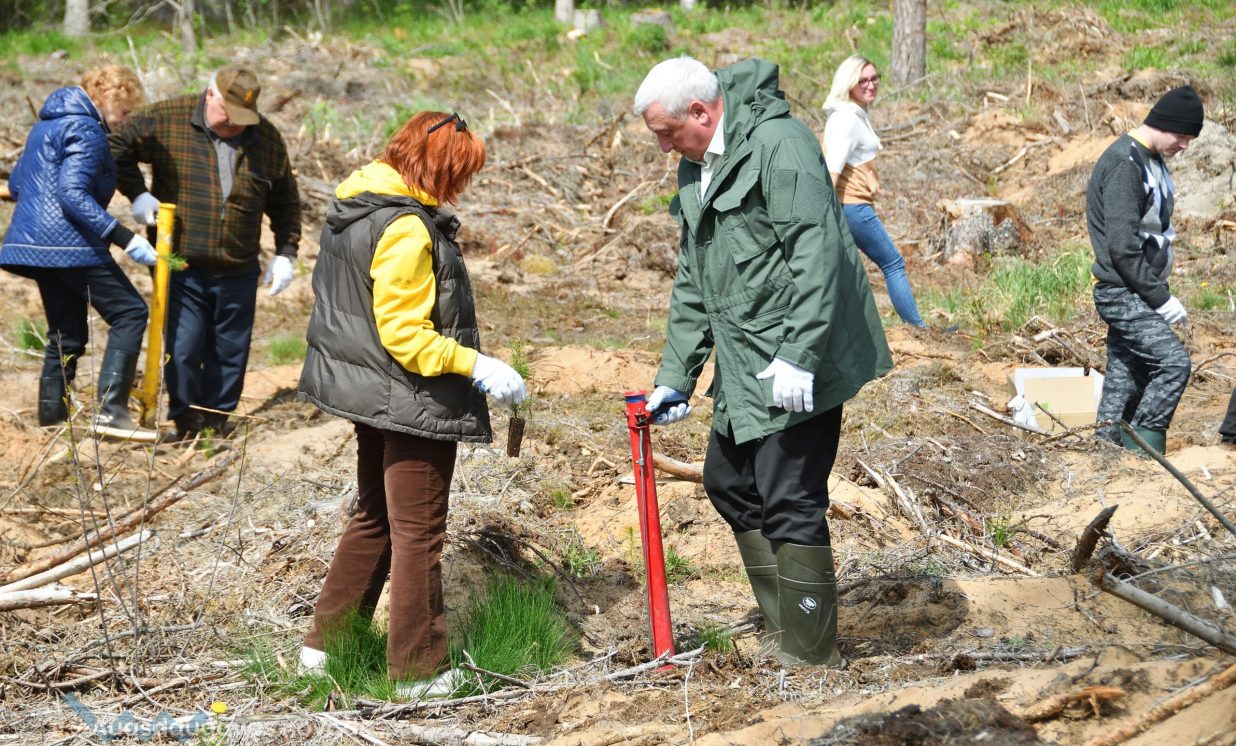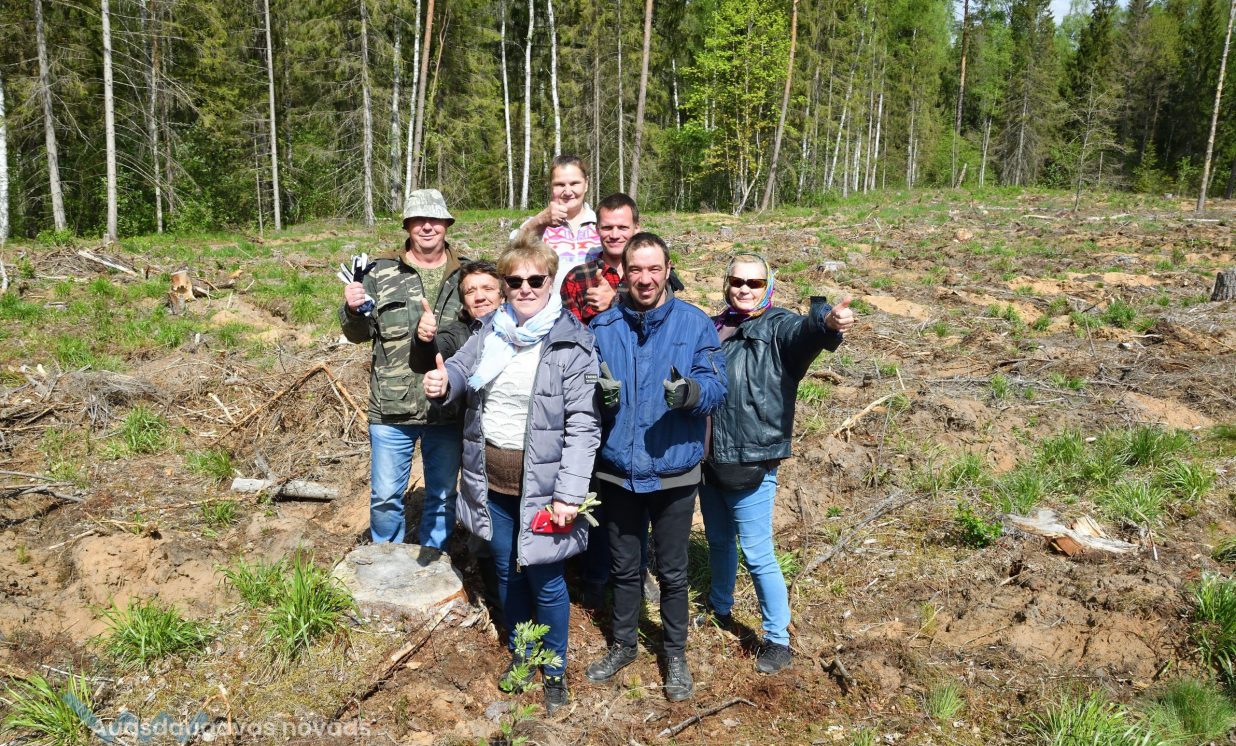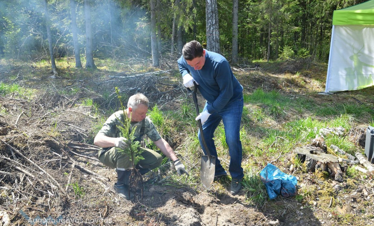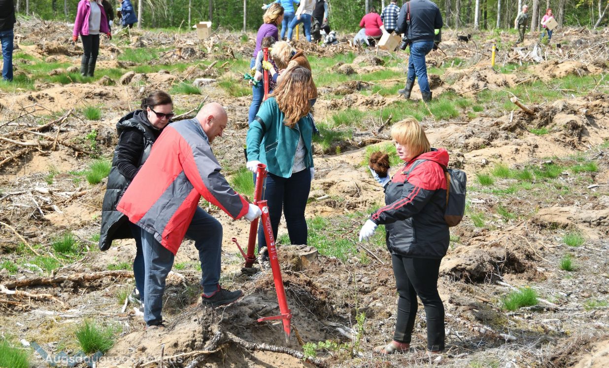Pirms darbu sākšanas mežkopis Aivars Litiņš nodemonstrēja priežu un citu koku sugu stādiņus, un pamācīja stādīšanas tehnoloģiju.