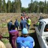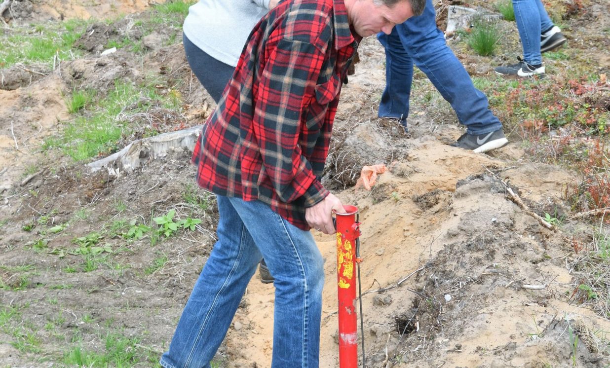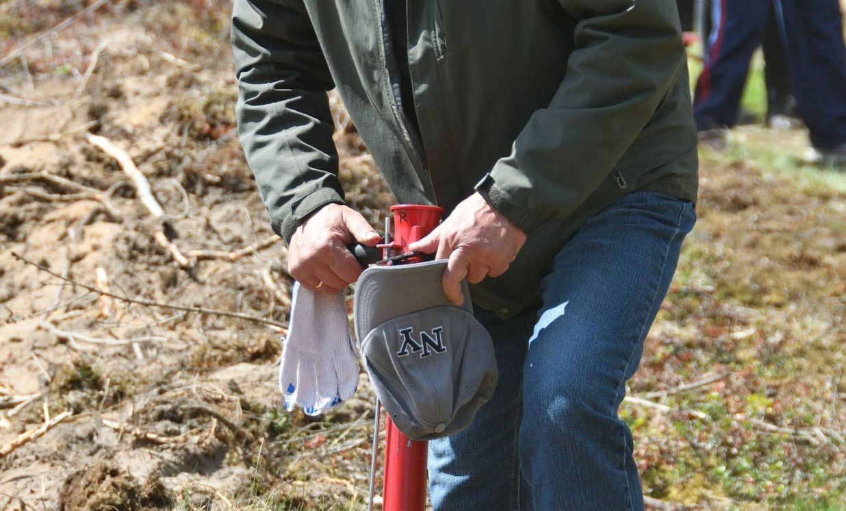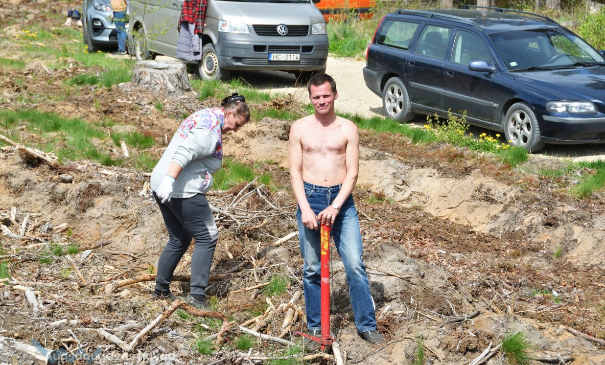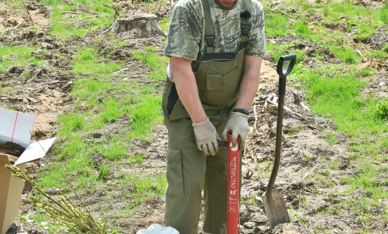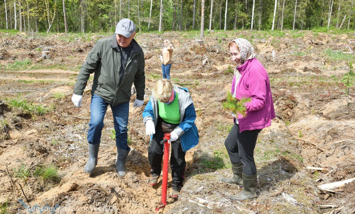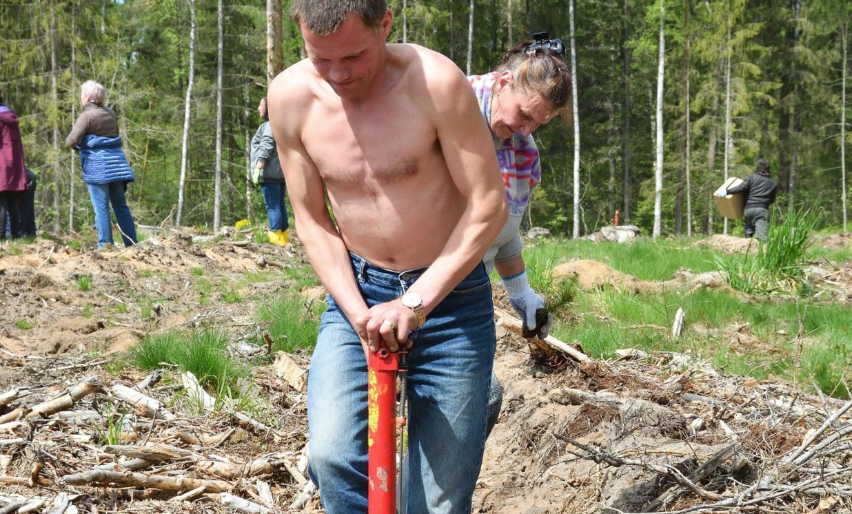 Pirms darbu sākšanas mežkopis Aivars Litiņš nodemonstrēja priežu un citu koku sugu stādiņus, un pamācīja stādīšanas tehnoloģiju.