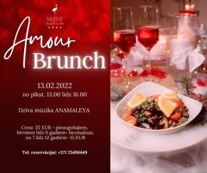 Par godu Valentīndienai 13. februārī no plkst. 13.00 līdz 16.00 kūrortā Silene Resort & SPA notiks brančs, kura laikā varēs baudīt arī dzīvo mūziku “Anamaleya” izpildījumā.