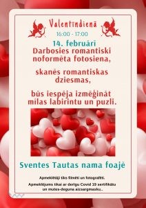 Sventes Tautas nama foajē 14. februārī no plkst. 16.00 līdz 17.00 tiks arī svinēti Mīlestības svētki. Par godu Valentīndienai varēs uztaisīt skaistu fotogrāfiju pie romantiski noformētas fotosienas, skanot romantiskai mūzikai. Apmeklētājiem tiks piedāvāta iespēja izmēģināt mīlas labirintu un puzli.