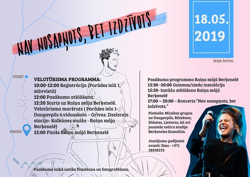 Pasākuma noslēgums notiks Raiņa mājā Berķenelē. Šeit viesi varēs baudīt brīvdabas koncertu, kurā uzstāsies jauniešu mūzikas grupas un solisti no Daugavpils, Rēzeknes, Ilūkstes un Lietuvas.