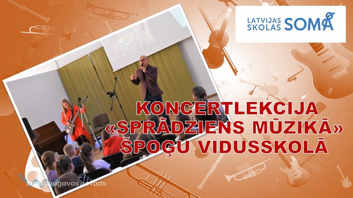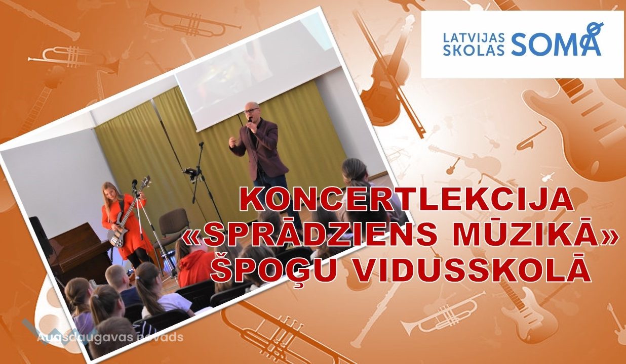Programmas Latvijas skolas soma ietvaros Špoģu vidusskolas 5.- 9.klašu izglītojamajiem bija iespēja piedalīties klātienes muzikālajā koncertlekcijā ‘’Sprādziens mūzikā’’. Koncertlekciju organizēja dziedātājs Mikus Abaroniņš un multiinstrumentāliste Atra Abaroniņa. Pasākuma ietvaros skolēniem bija iespēja izzināt populārās mūzikas vēsturi, sākot no 1920.gada līdz pat mūsdienām. Tas bija ceļojums laikā, kā mūzika iet roku rokā ar 20.gs vēstures lielākajiem notikumiem un atspoguļo savu laikmetu. Mūziķi izpildīja visiem zināmas un iemīļotas melodijas, kuras ir radījuši tādi pasaules šovbiznesa spīdekļi un grupas, kā QUEEN, Maikls Džeksons, The Beatles, Rolling Stones u.c.