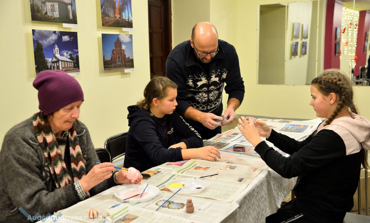 4. decembra vakarā tika veidotas krāsainas cepurītes, ko iekārt egles zaros. Savukārt 12. decembra vakarā kopā ar amatu meistaru Valdi Grebežu notika īpaša eglīšu rotājumu darbnīca, kurā tās dalībnieki mācījās pagatavot rotājumus no neparasta materiāla – gāzbetona. Te nu katrs ļāvās iztēlei – sniegavīri, sarkankrūtīši, mīlīgas pelītes par godu nākamajam Žurkas gadam, tapa arī sivēns, pavadot Cūkas gadu. No gāzbetona izslīpētās figūriņas tika noklātas ar akrila krāsu, un jau tajā pat vakarā ikviens devās mājās ar jaunu mantiņu svētku eglītei.