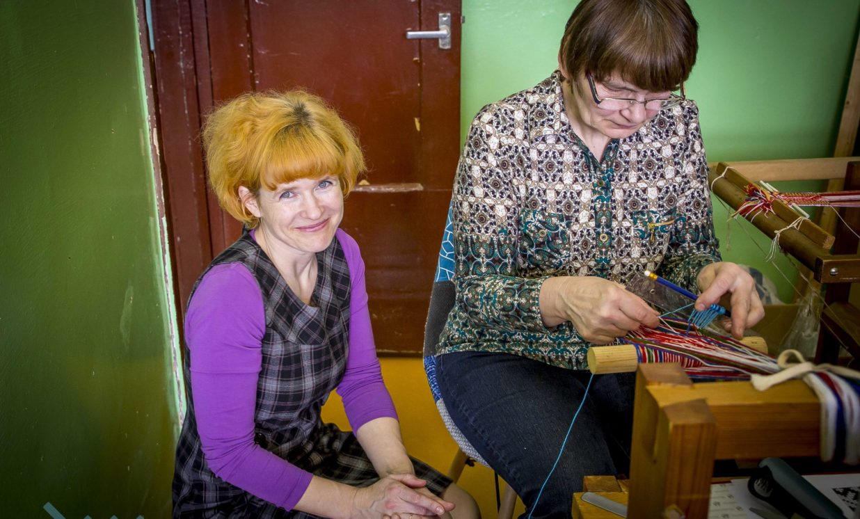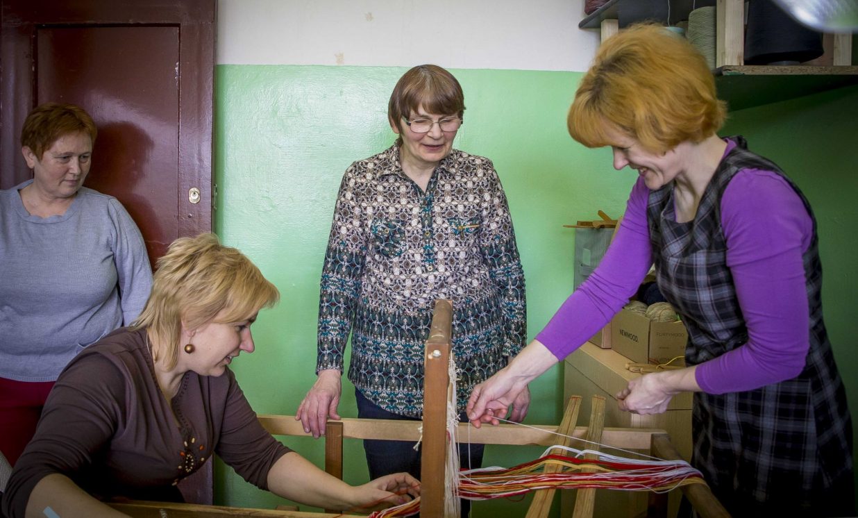 Naujenes Kultūras centrā var apskatīt Naujenes pagasta rokdarbnieču rakstaino cimdu un zeķu izstādi un nodoties jostu aušanas burvībai
