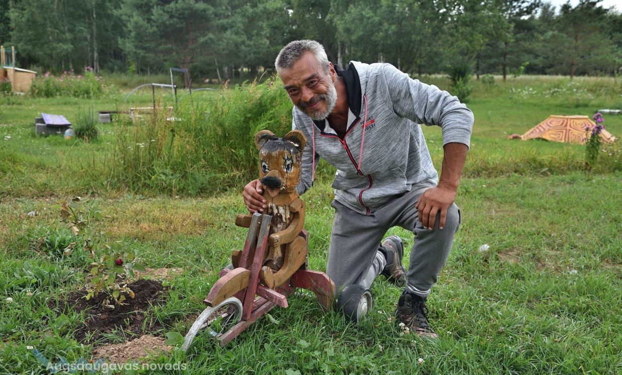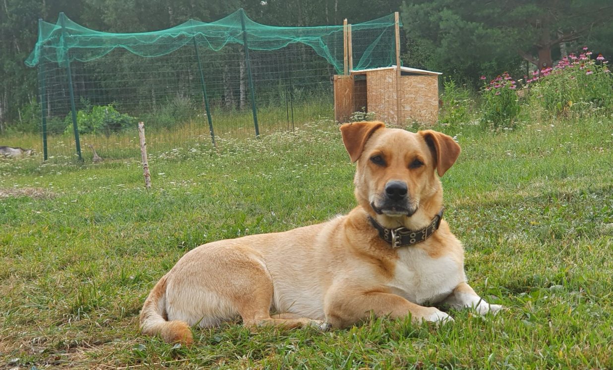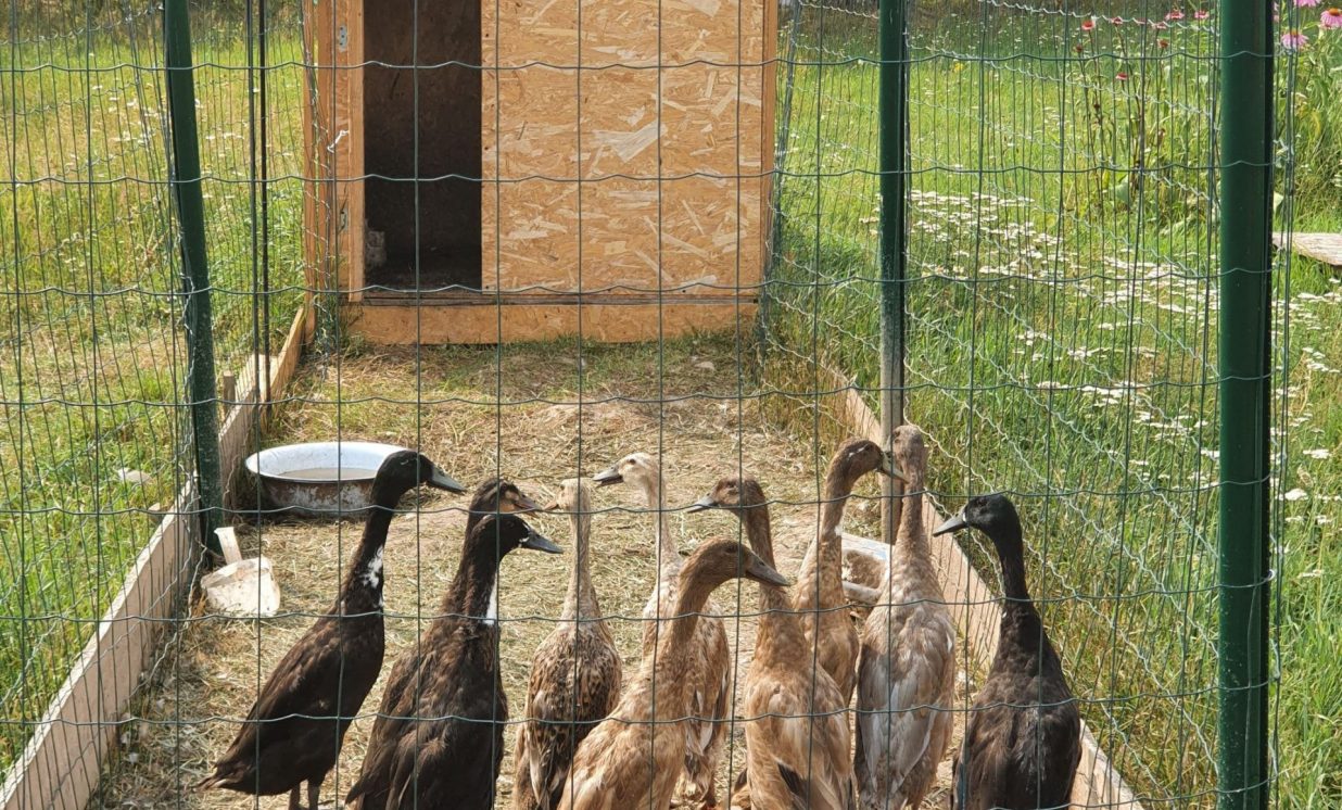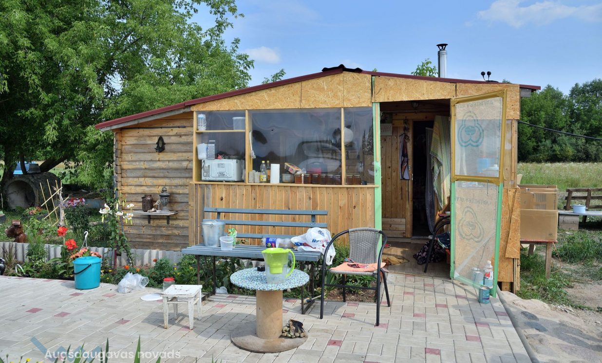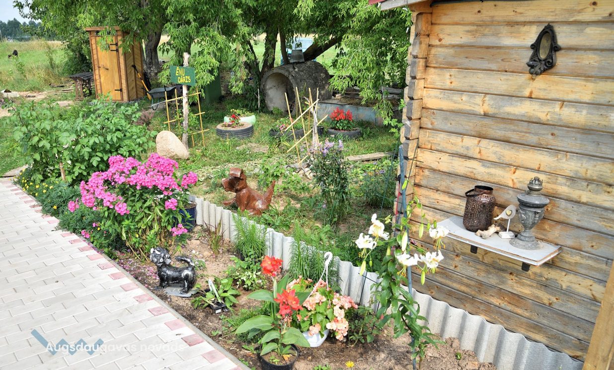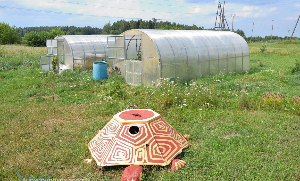 Uz lauka, kas iepriekš bijis kokiem un krūmiem aizaudzis, pamazām notiek rosība, uzcelti putnu aploki un neliela būdiņa pašu saimnieku dzīvošanai, bet viesus sagaida divi draudzīgi suņuki Ģenerālis un Seržants, kas te uzņemti no dzīvnieku patversmes. “Esmu 15 gadus nodienējusi robežsardzē, tāpēc man te tāda militāra atmosfēra,” smejas Vineta.