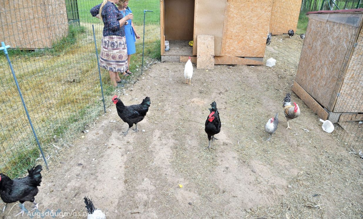 Vineta un Aitačs laipni izvadā ekskursijā pa nelielo saimniecību un izrāda neparastas putnu šķirnes – te mīt pērļu vistas, paipalas, Ķīnas zīda vistas, Puškinas un Pavlovas vistas, Lavandas Ameraukāni, Kohini, Sudraba un Zelta Brāventes, Favelores, Bramas, Araukanas, Antverpenes vistas, ungāru plikkaklainās, Orlovas vistas, Džersijas giganti un daudzi citi. Īpaši eksotisks ir Ayam Cemani šķirnes gailis, kas visnotaļ ir melnā krāsā, arī gaļa esot melna, bet garšas ziņā neatšķiroties no parastas vistas gaļas. Aitača mīlules ir Sultanas šķirnes baltās vistas ar kuplu “turbānu” uz galvas. Vinetai ir mīļš plikkaklainais gailis vārdā Eiriks, ko nopirkusi par vienu eiro no kādas tantes, kas gribēja no gaiļa atbrīvoties.