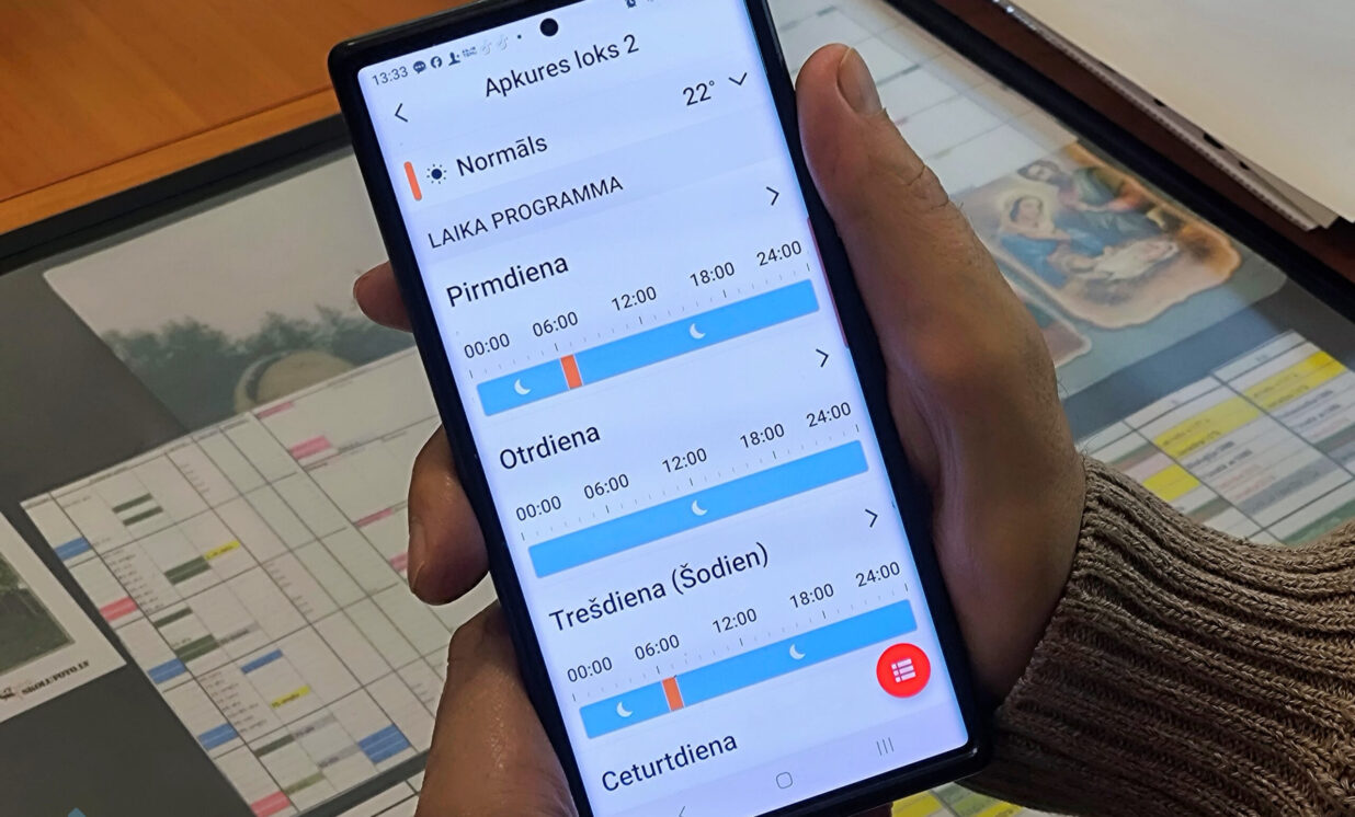 Naujenes pamatskolas direktors Pāvels Brovkins uzsver, ka ekonomija jau ir jūtama. Visa apkures sistēma tiek vadīta no aplikācijas telefonā, var regulēt siltumu, lai naktī siltuma padeve mazāka, bet stundu laikā lielāka. “Tagad varu kontrolēt temperatūru skolā, ieslēgt vai izslēgt, būdams jebkur pasaulē,” saka direktors un nodemonstrē aplikāciju darbībā. Gāzes tvertne uz 9,3 kubikmetriem ir ierakta zeme skolas teritorijā, un ārpusē redzams vien tvertnes vāks, pats gāzes katls ir neliela balta kaste uz sienas.