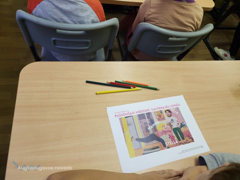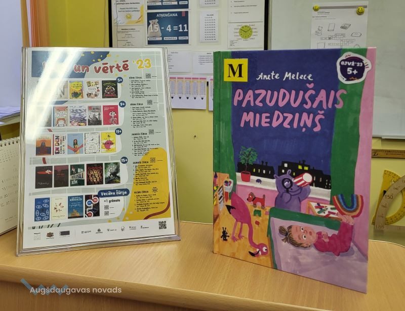 Savukārt 1. un 2. klases skolēni kopā ar bibliotekāri Ilviju lasīja Bērnu žūrijas 5+ kategorijā iekļauto Anetes Meleces grāmatu “Pazudušais miedziņš”. Stāsta varoņi ir Stella, vecāki, grāmatas, rotaļlietas un rūķi, kas cilvēkiem piegādā miegu. Taču šoreiz šķiet, ka miedziņu kāds ir nozadzis, jo mazā Stella neparko nevar aizmigt arī pēc tam, kad tētis viņai izlasījis jau vairākas vakara pasaciņas.